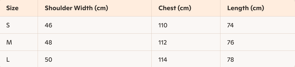 • Size : S, M,L