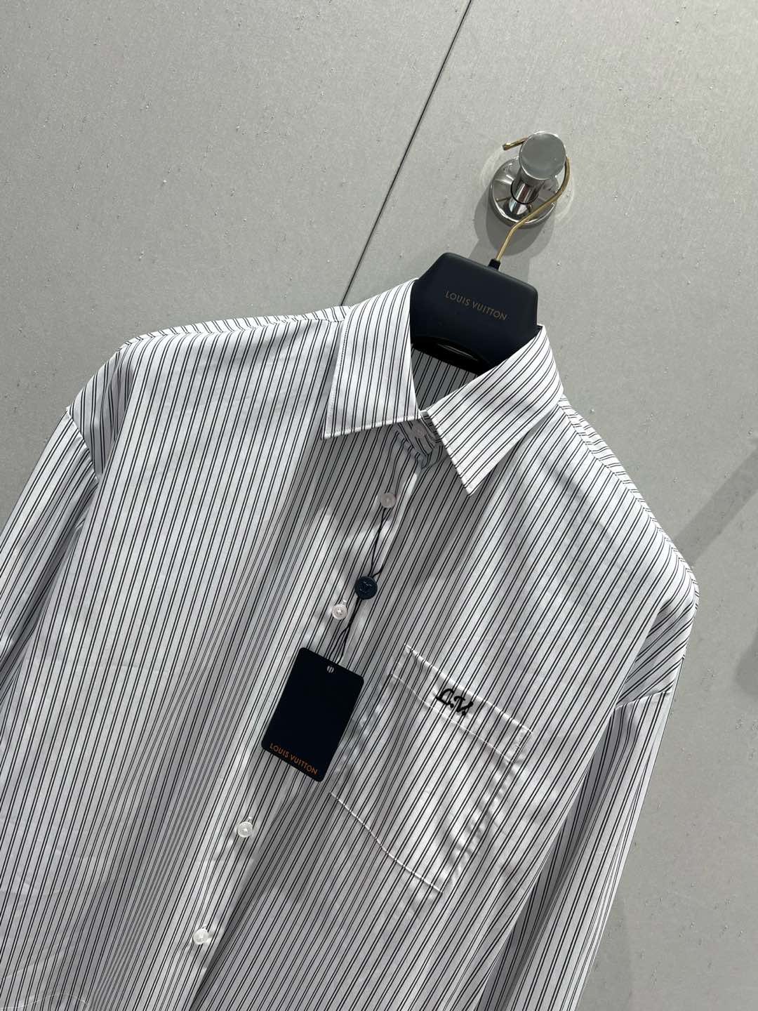 LV 25 Striped Short Long-Sleeved Shirt Black White 209245