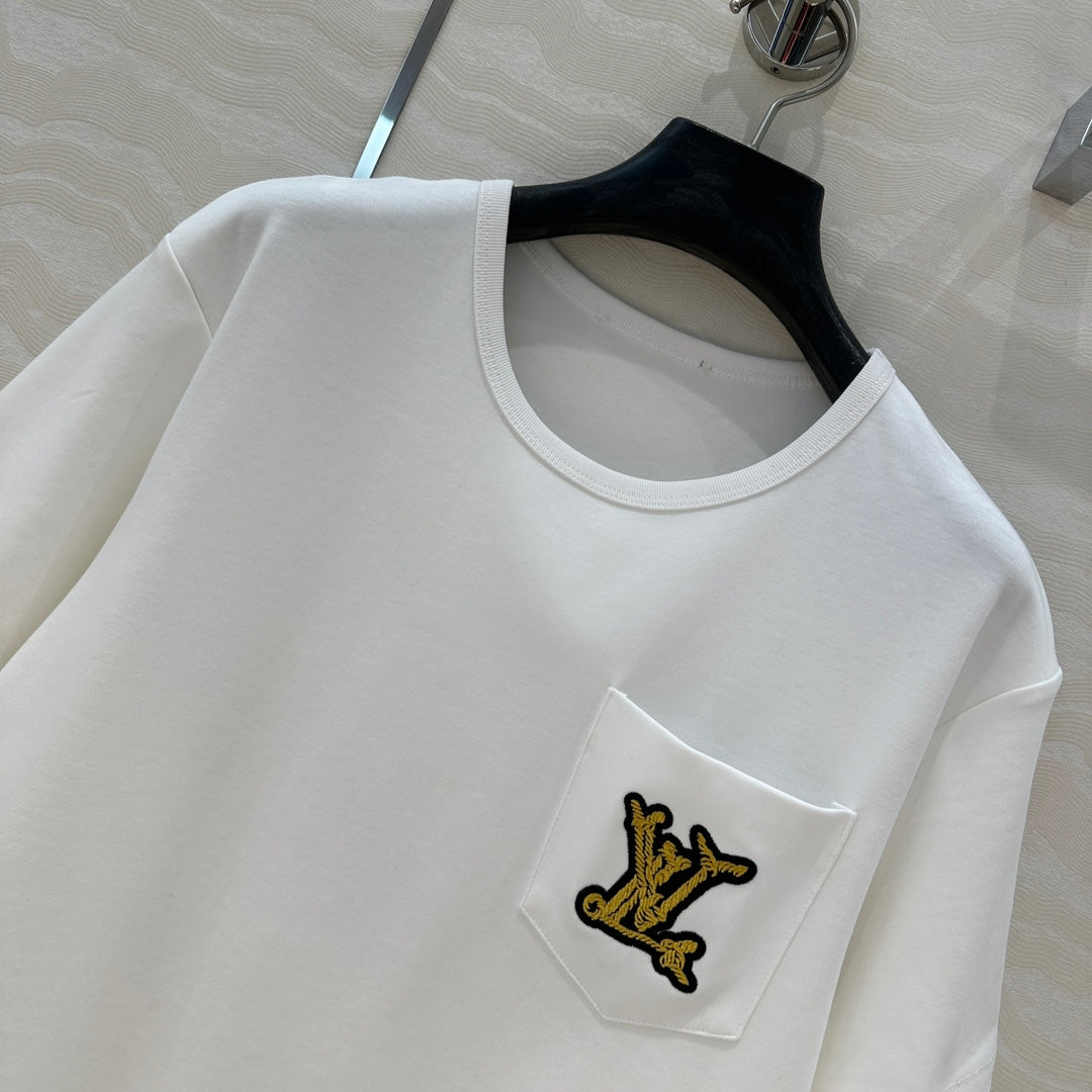 LV 25 Three-Dimensional Embroidered Logo T-shirt White Cotton