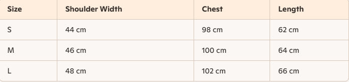 - Size :S, M, L