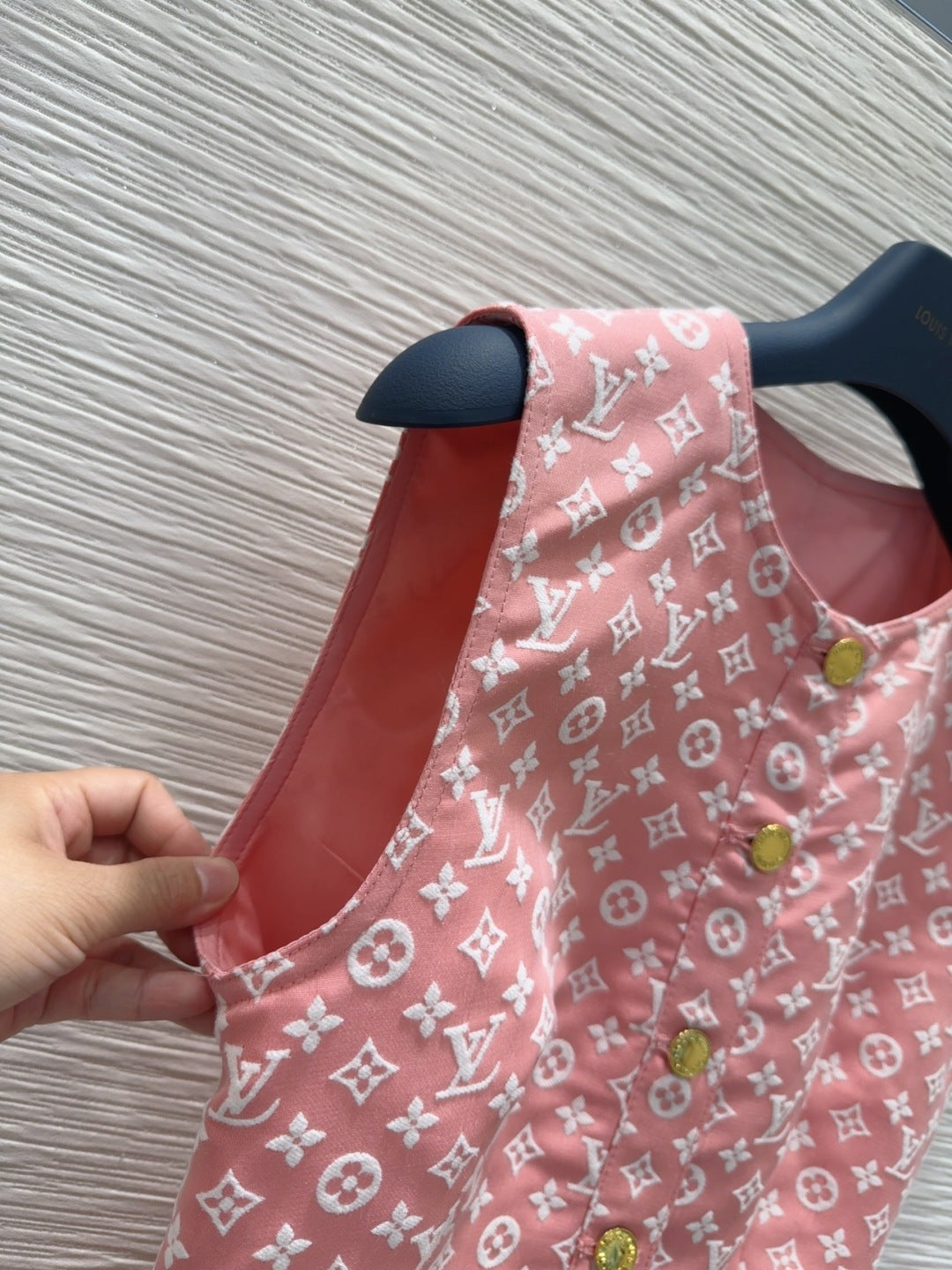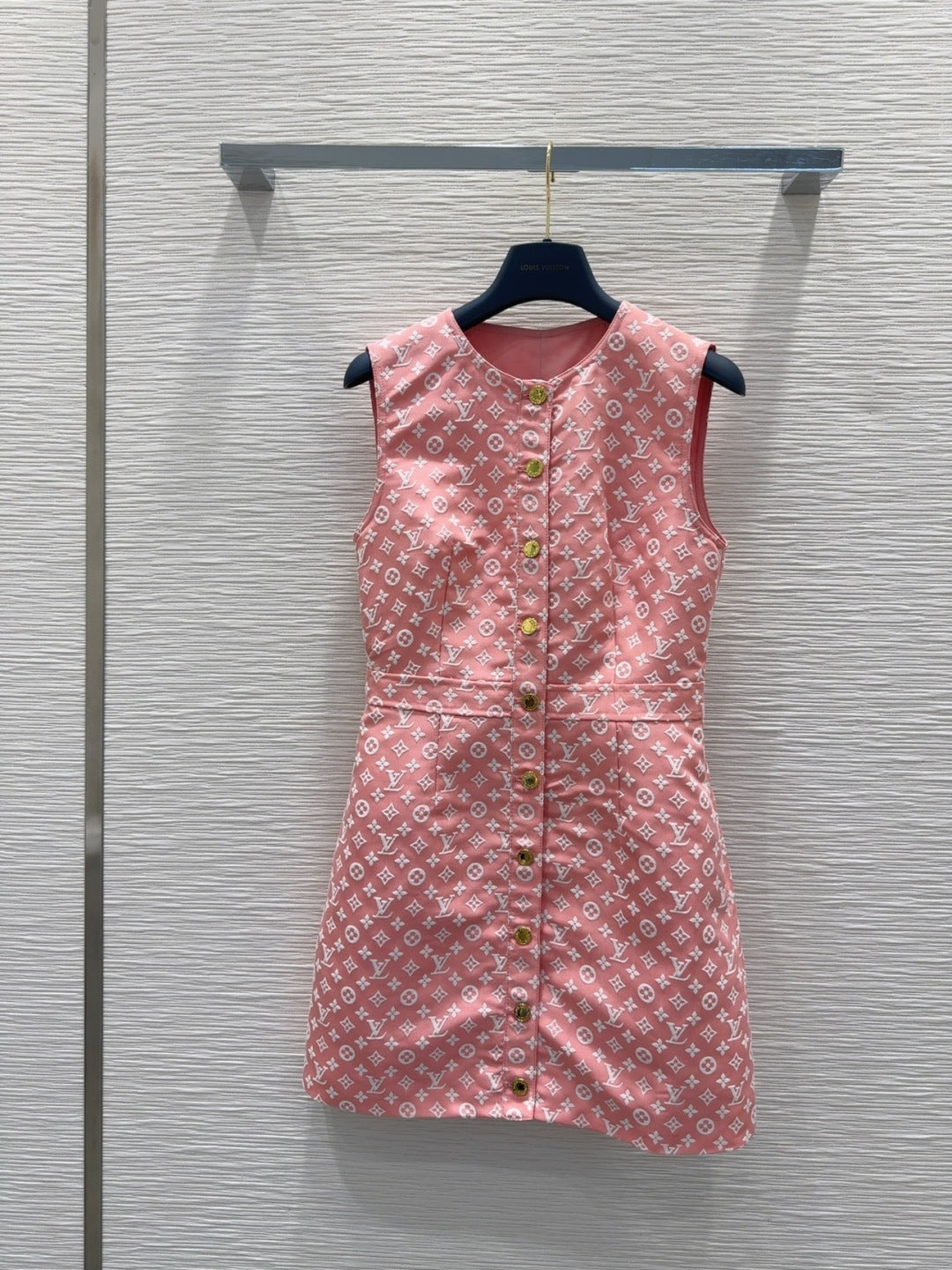 LV 25 White Logo Vest Dress Pink Cotton Wool