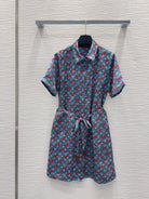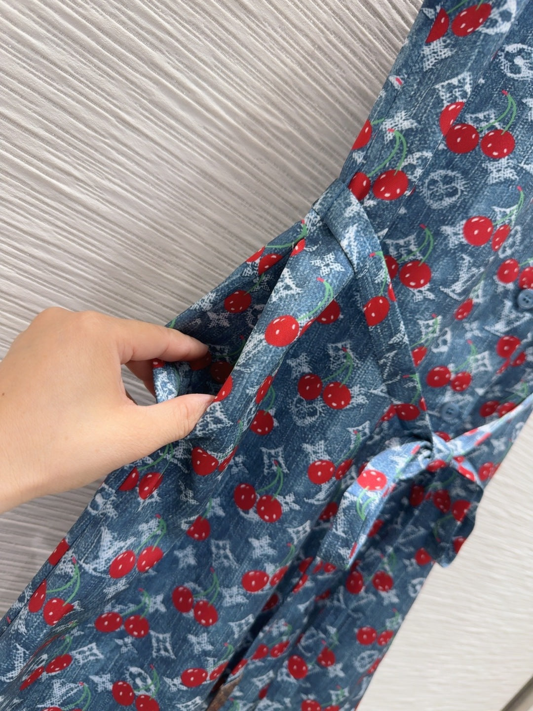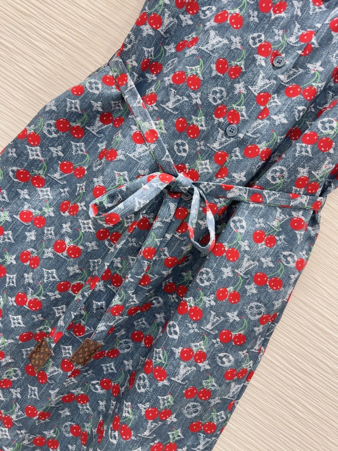 LV 25S Cherry Printed Dress Blue Red Poliester