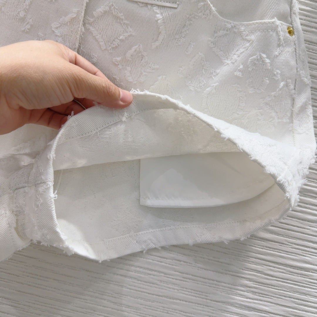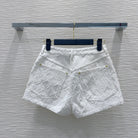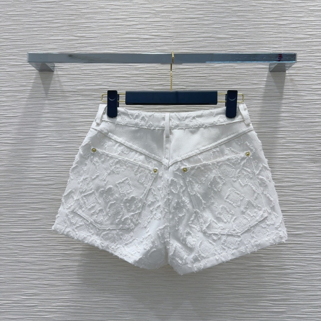 LV 25S Metal Pants Zipper Shorts White Cotton