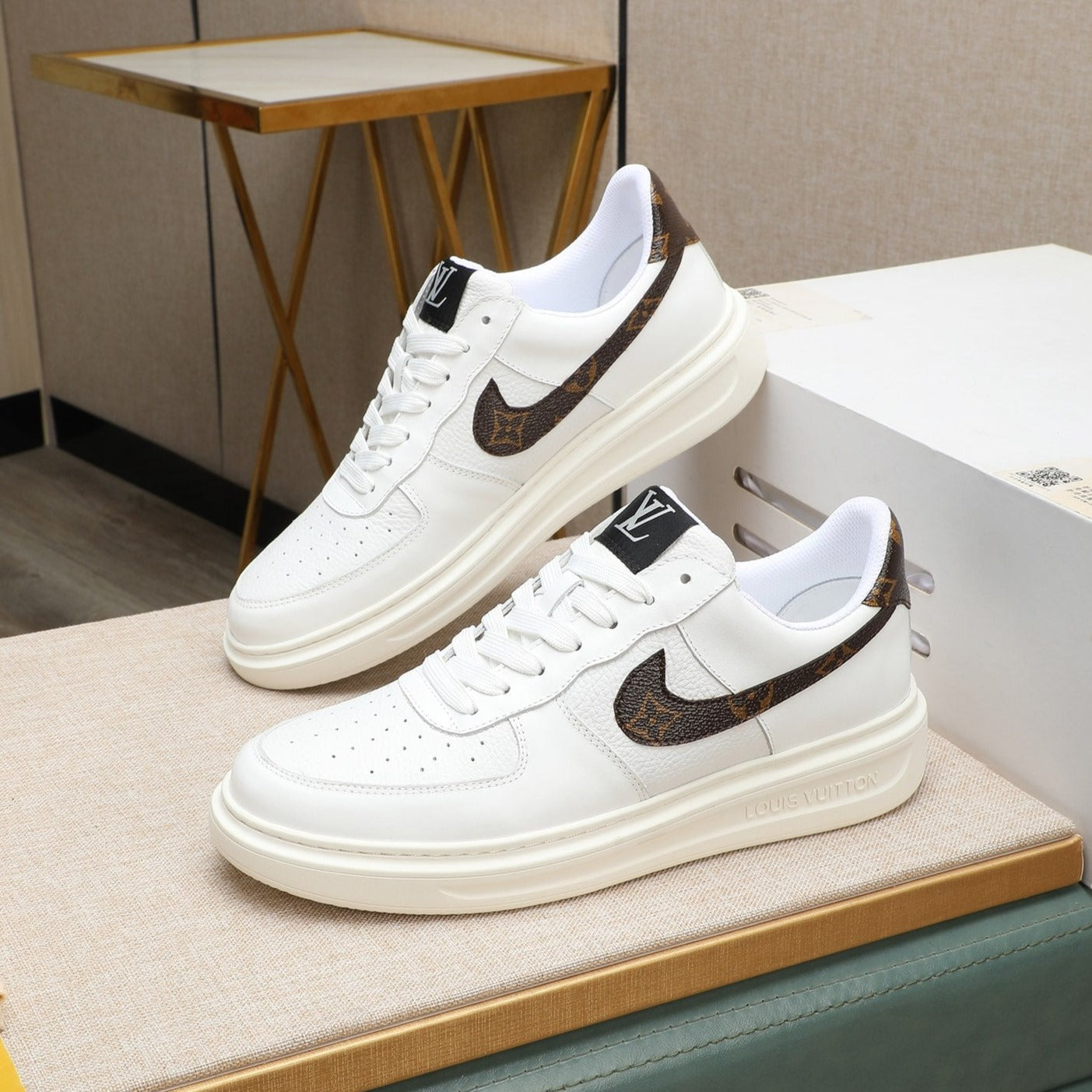 LV AIR FORCE 1 GLOSSY WHITE CALFSKIN WITH BROWN MONOGRAM LOGO