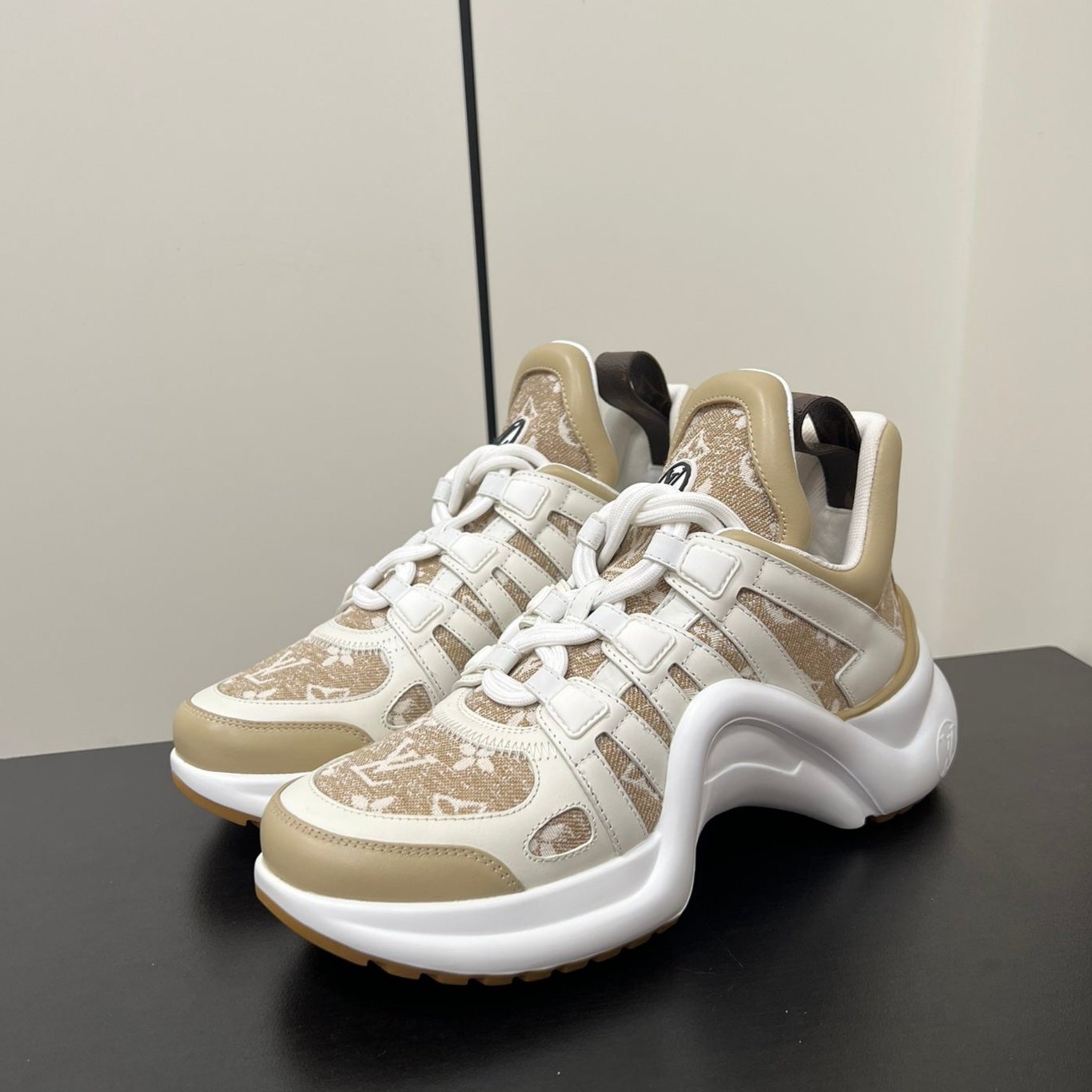 LV Archlight Sneaker 50mm White Mix Khaki Monogram Jacquard Fabric