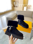 LV Aspen Platform Ankle Boot Black Suede