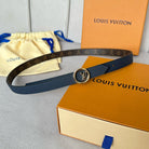LV Circle 20mm Reversible Belt Gold Buckle Navy Blue Brown Leather