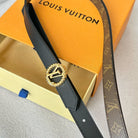 LV Circle Nautical 20mm Reversible Belt Gold Buckle Black Brown Lambskin