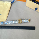 LV Circle Nautical 20mm Reversible Belt Gold Buckle Black White Blue Lambskin
