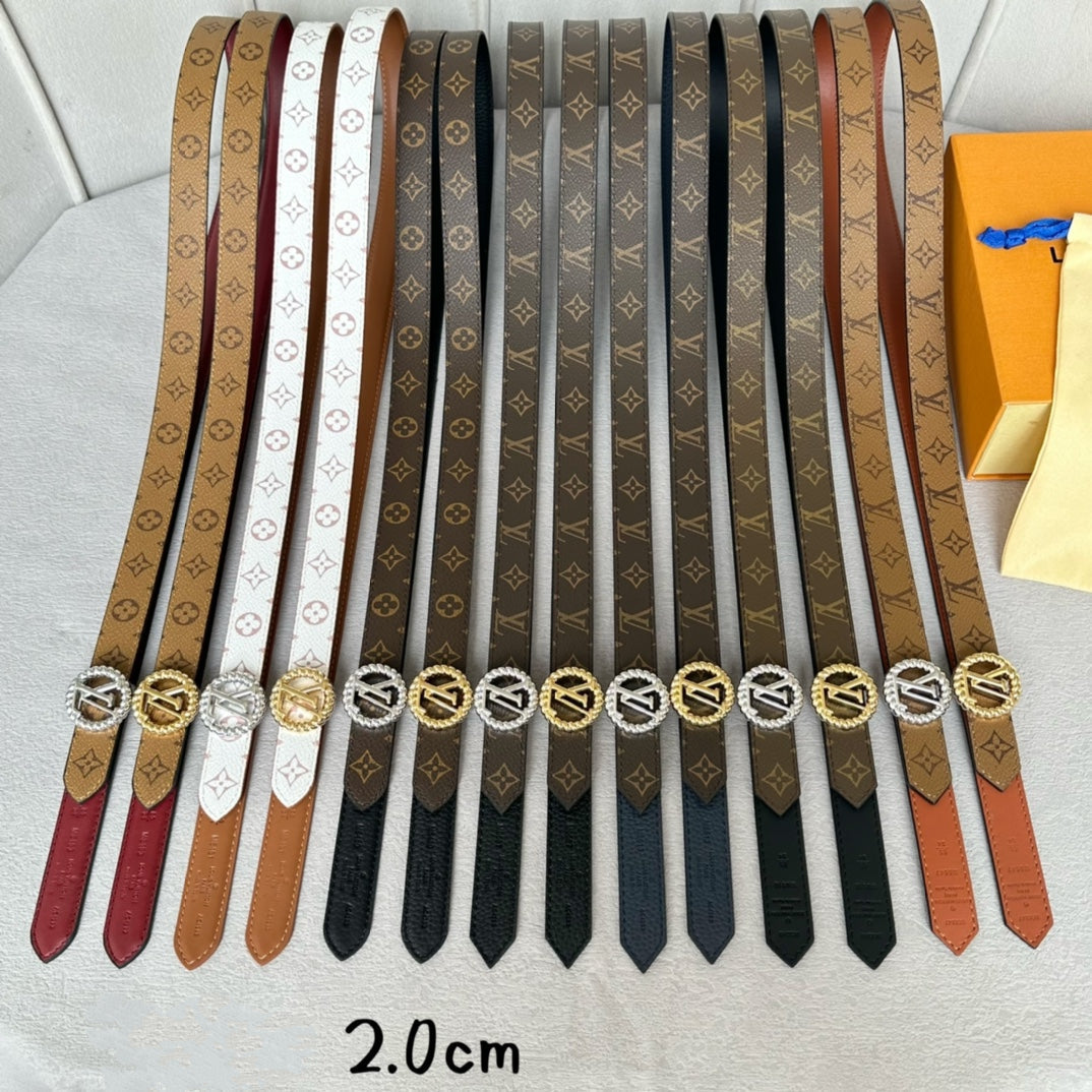 LV Circle Nautical 20mm Reversible Belt Silver Buckle Black Brown Lambskin