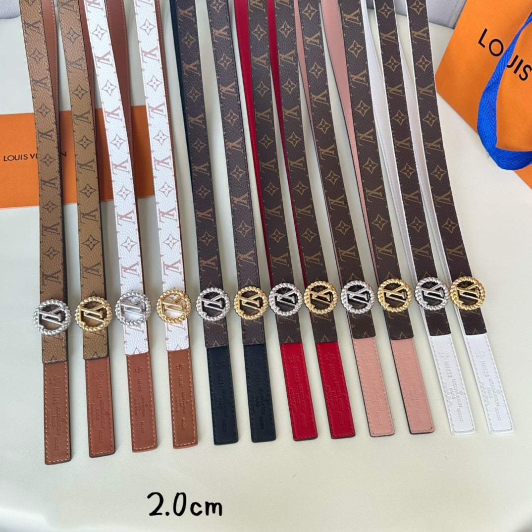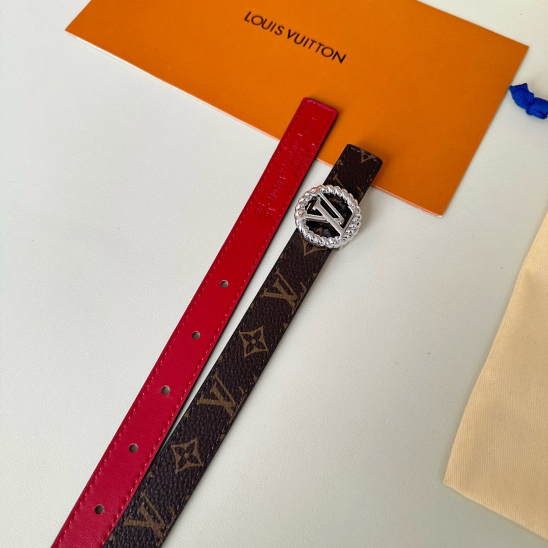 LV Circle Nautical 20mm Reversible Belt Silver Buckle Red Brown Lambskin