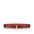 LV FLOWERGRAM 30MM REVERSIBLE BELT IN CHERRY RED CALFSKIN GOLD HARDWARE