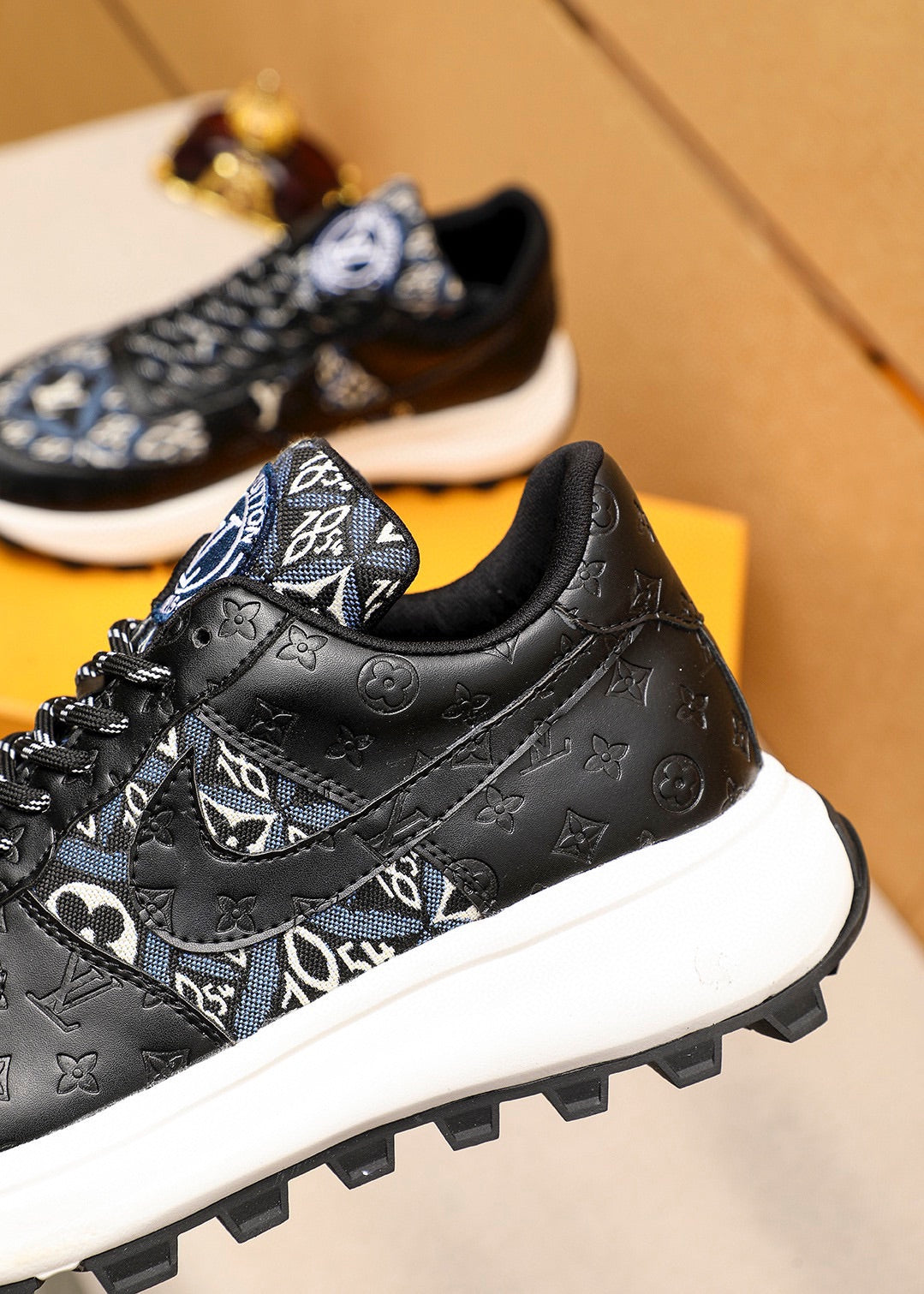LV HIGH-END CLASSIC BLACK AND WHITE SUEDE MEN'S SHOES