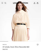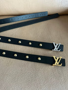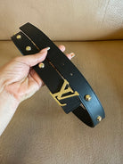 LV INITIALES STUDS 30 MM REVERSIBLE BELT IN BLACK CALFSKIN GOLD HARDWARE
