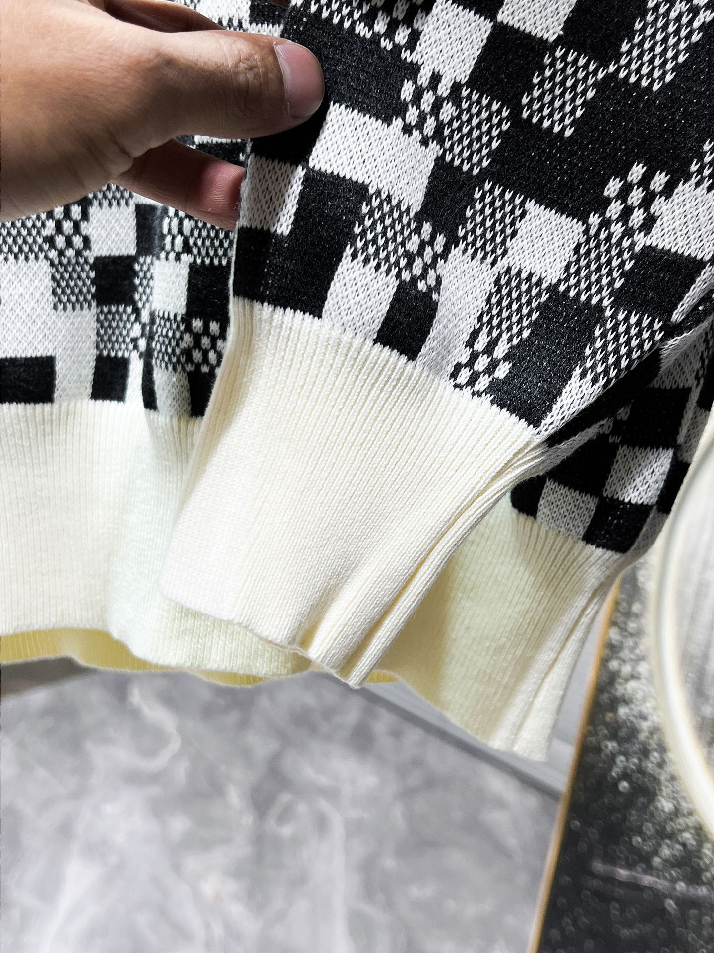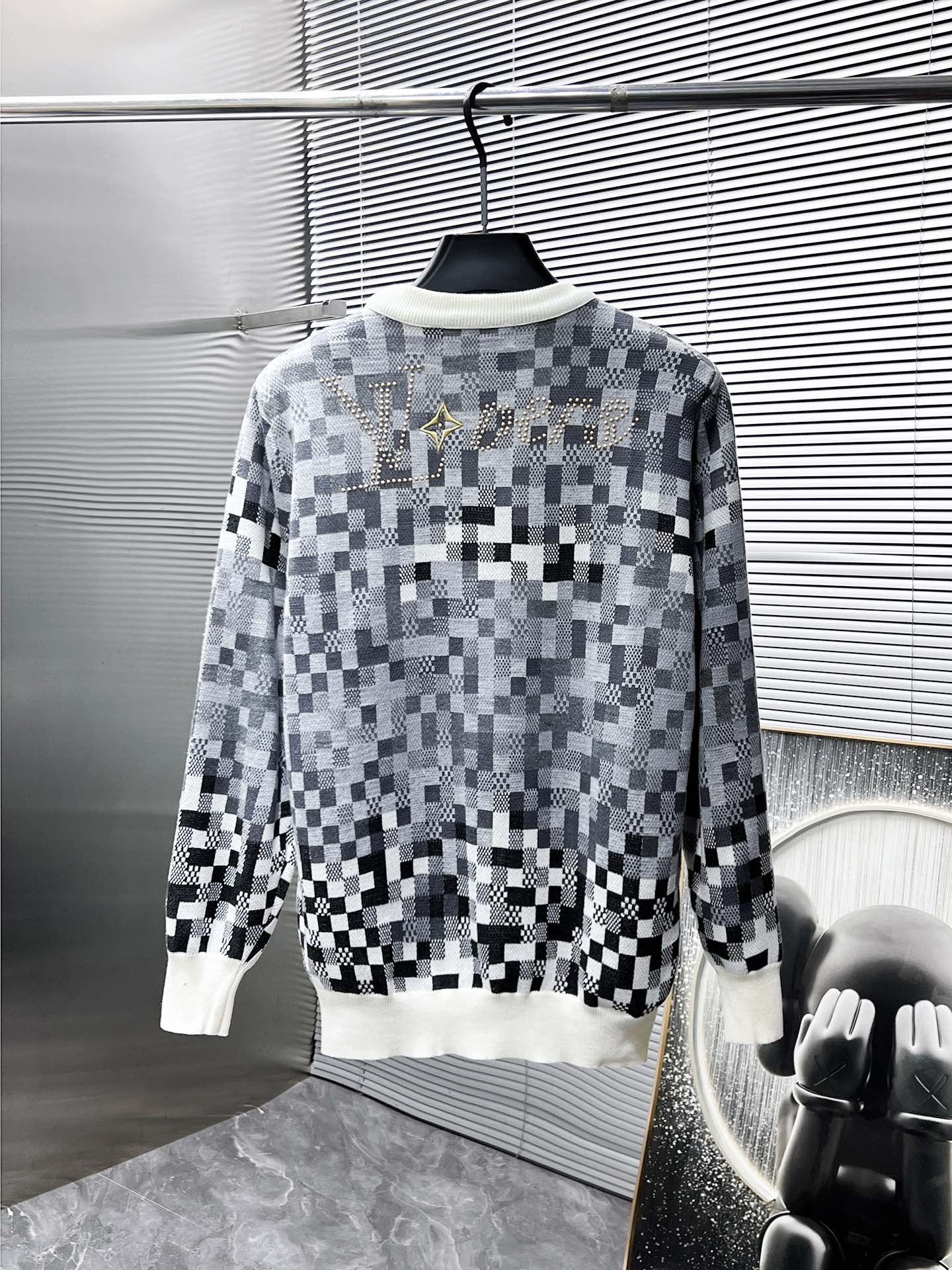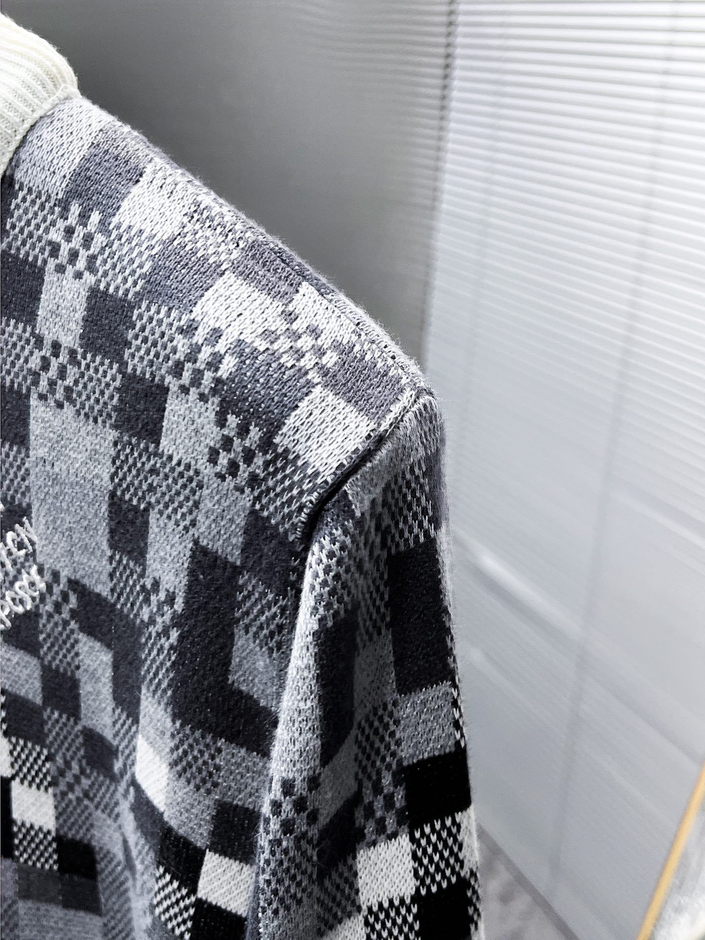 LV KNITTED SWEATER IN GRAY BLACK WHITE DAMOFLAGE MOTIF WOOL 238799
