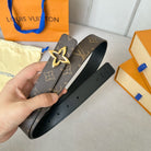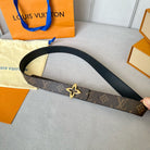 LV MINI FLOWERGRAM 30MM REVERSIBLE BELT IN BLACK CALFSKIN GOLD HARDWARE