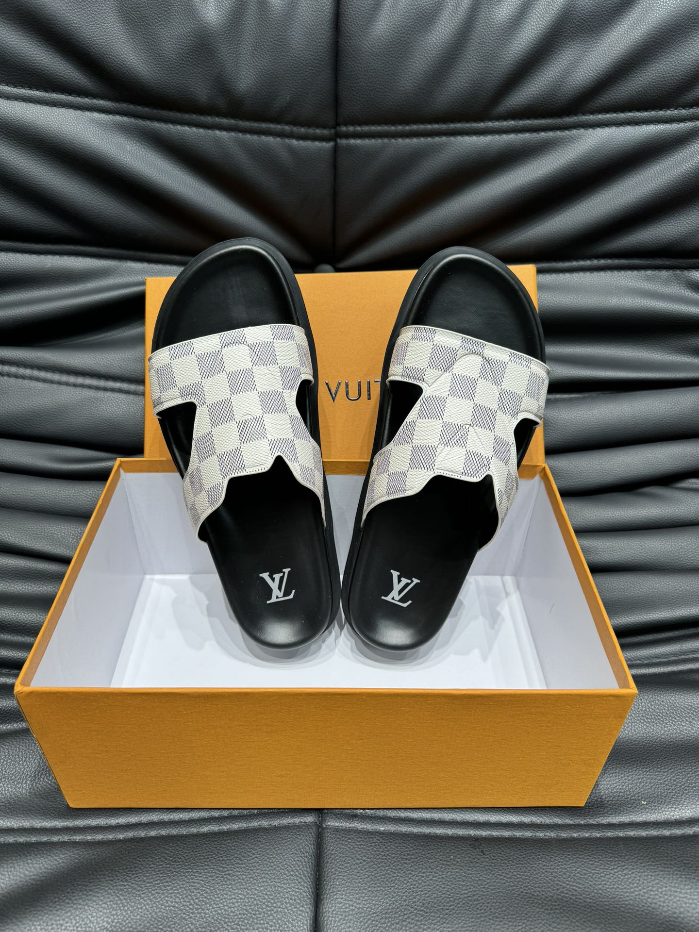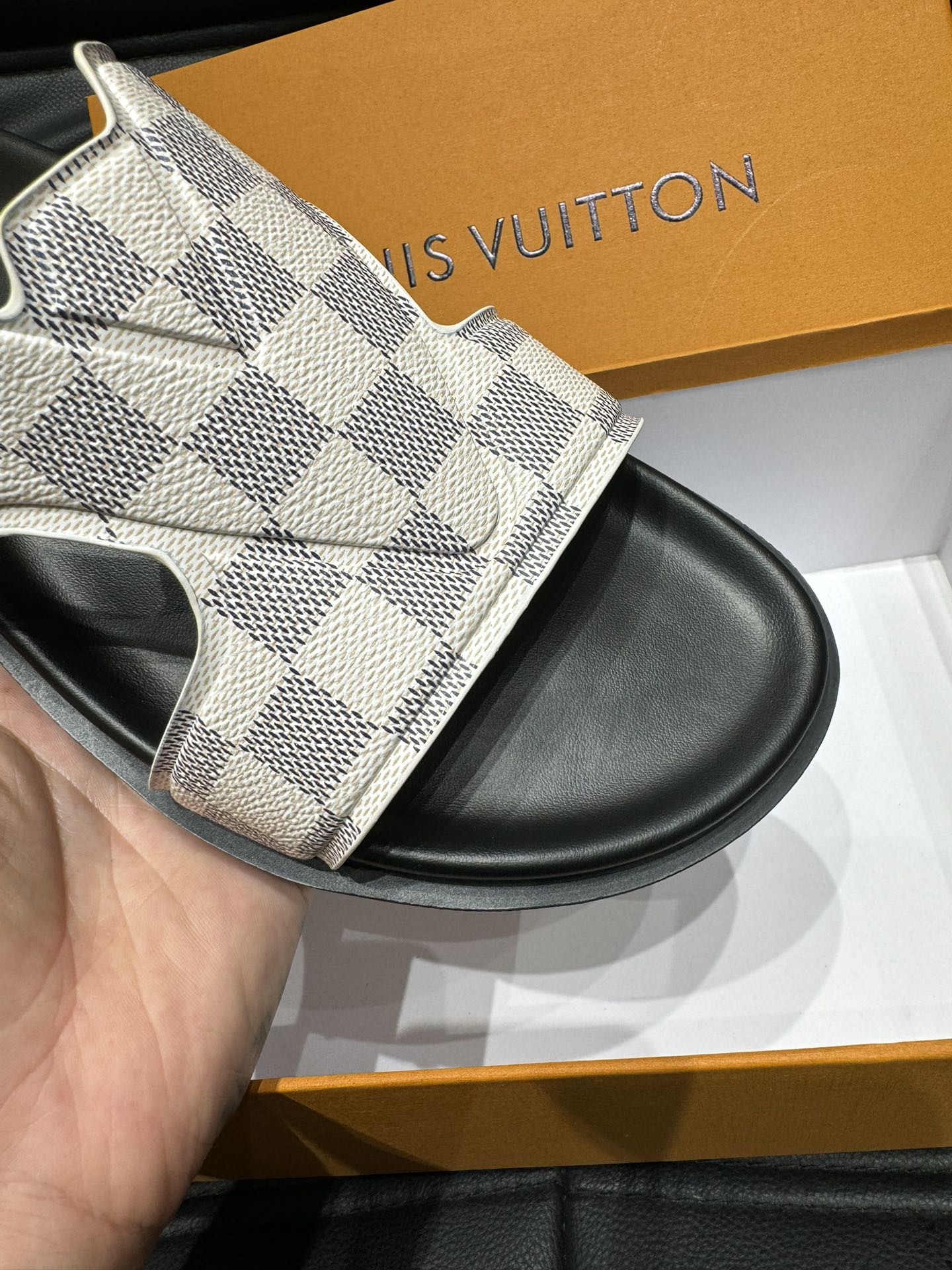 LV OASIS MULE IN WHITE DAMIER CALFSKIN