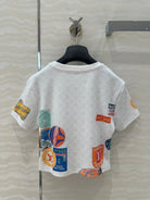 LV Pattern Logo Positioning Poster Badge Printed Croptop Shirt White Cotton