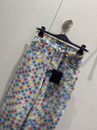 LV Plaid Multicolor Denim Jeans Blue Cotton