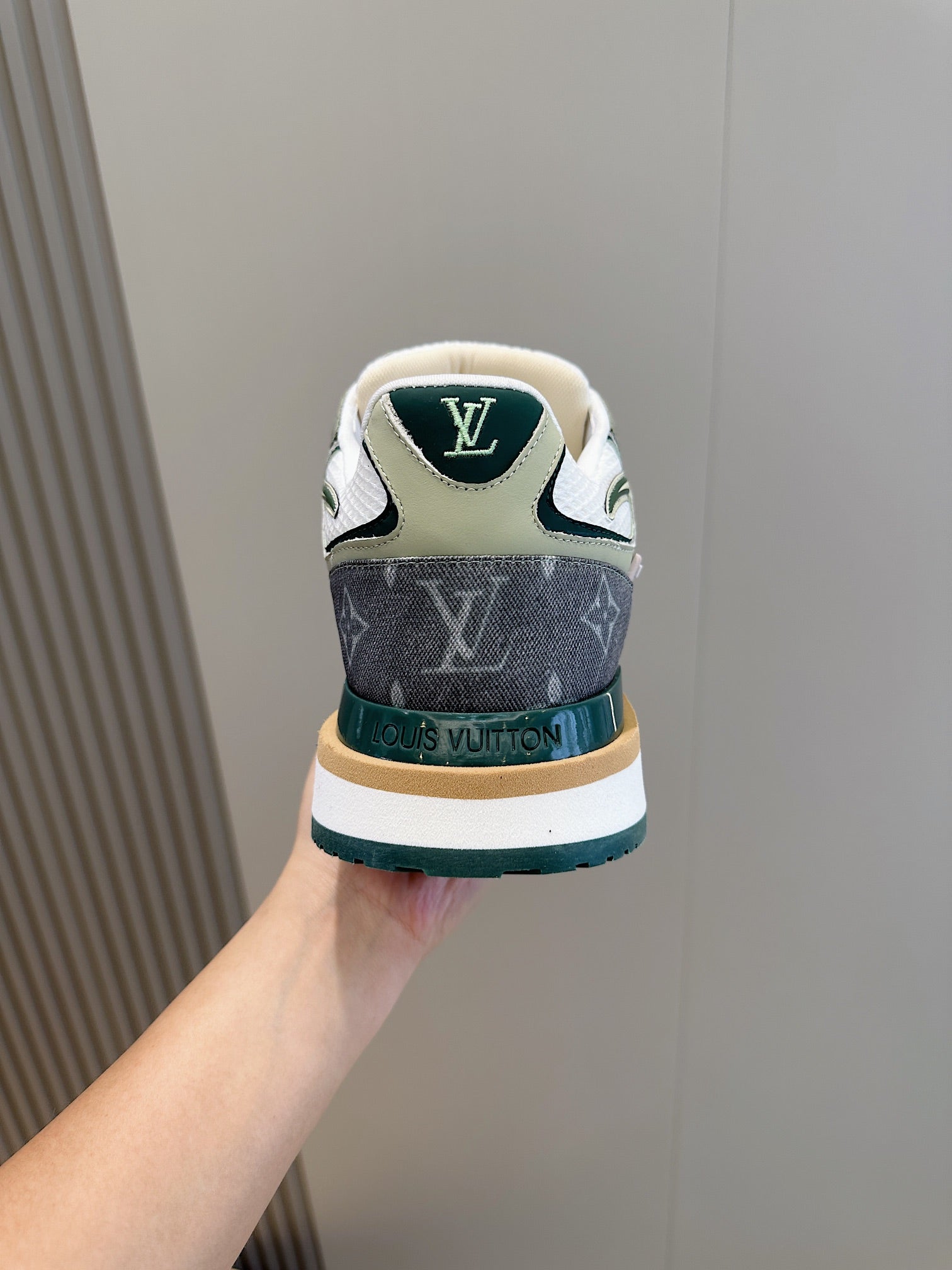 LV RUN AWAY SNEAKERS IN GREY MESH FABRIC AND SUEDE