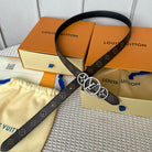 LV S-LOCK BELT 20 MM TAUPE BROWN MONOGRAM AND BLACK CALFSKIN SILVER HARDWARE