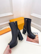 LV Shake Platform Ankle Boot 120mm Plain Black Calfskin