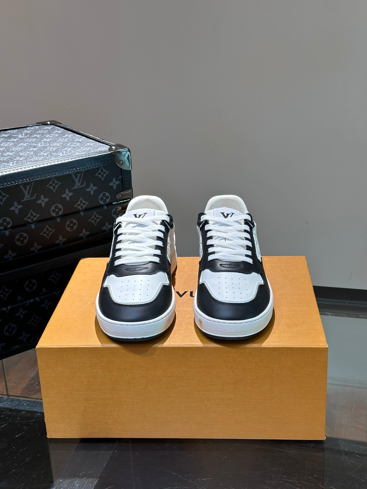 LV SNEAKER WHITE MIX BLACK EMBOSSED CALFSKIN