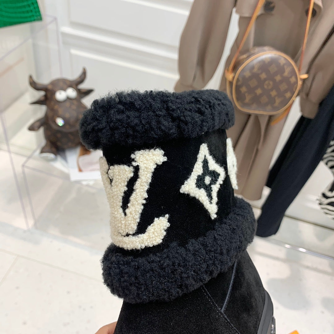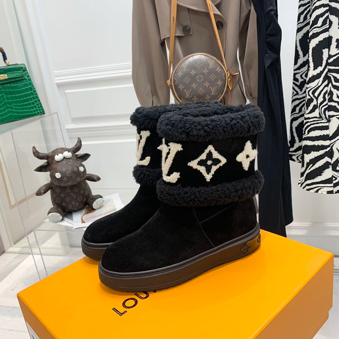 LV Snowdrop Flat Ankle Boot Black Monogram White Suede