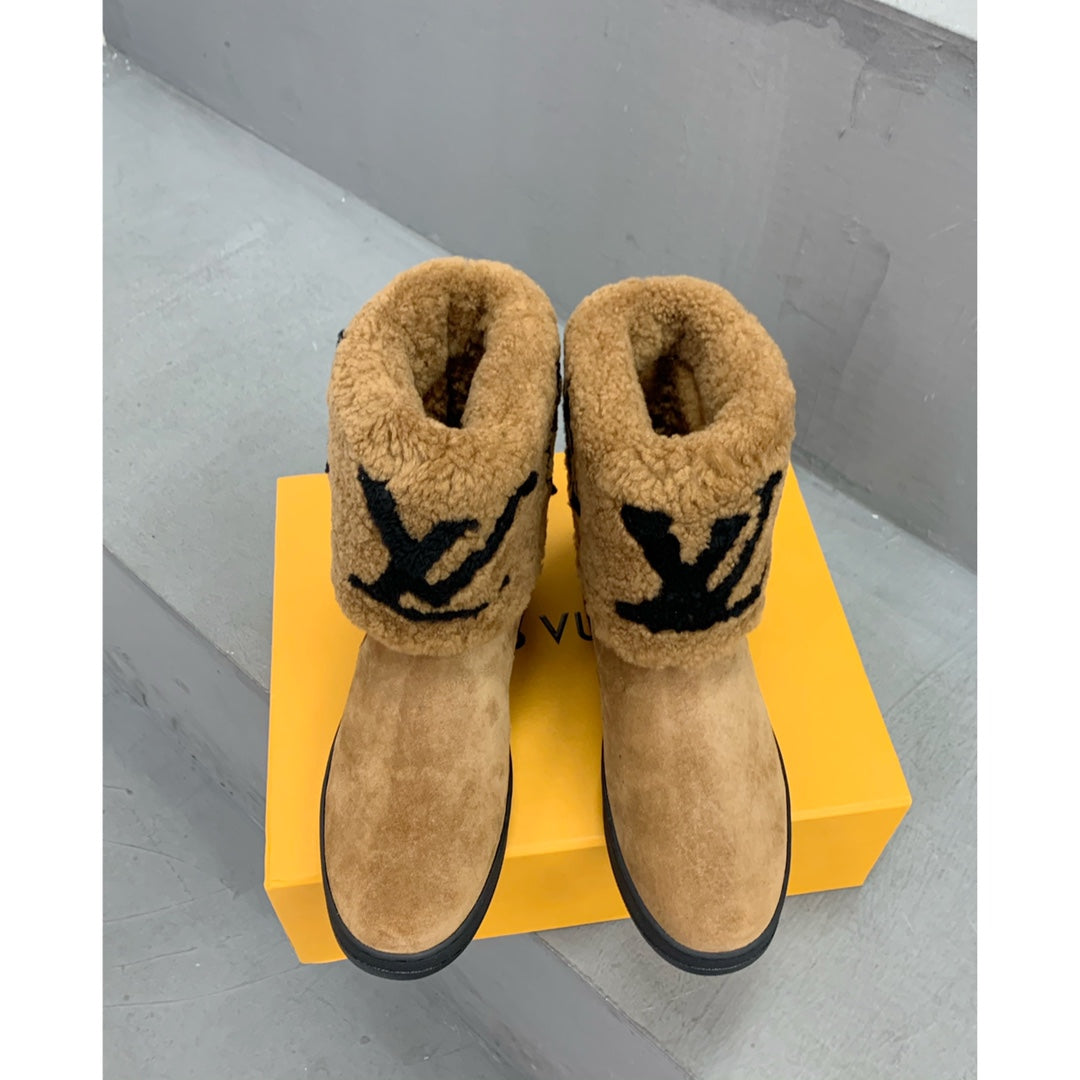 LV Snowdrop Flat Ankle Boot Brown Monogram Black Suede