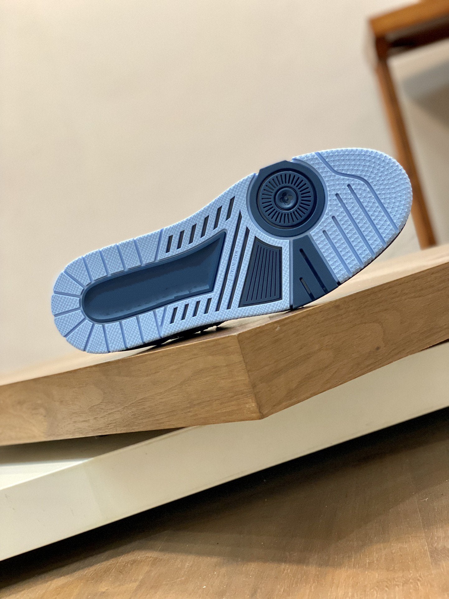 • Upper: "Bold colors are used to highlight the exquisite design, inspired by classic basketball shoes. The LV logo is hand-embroidered on one side."