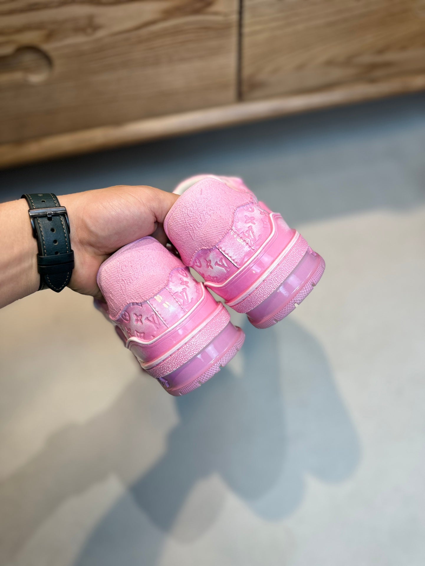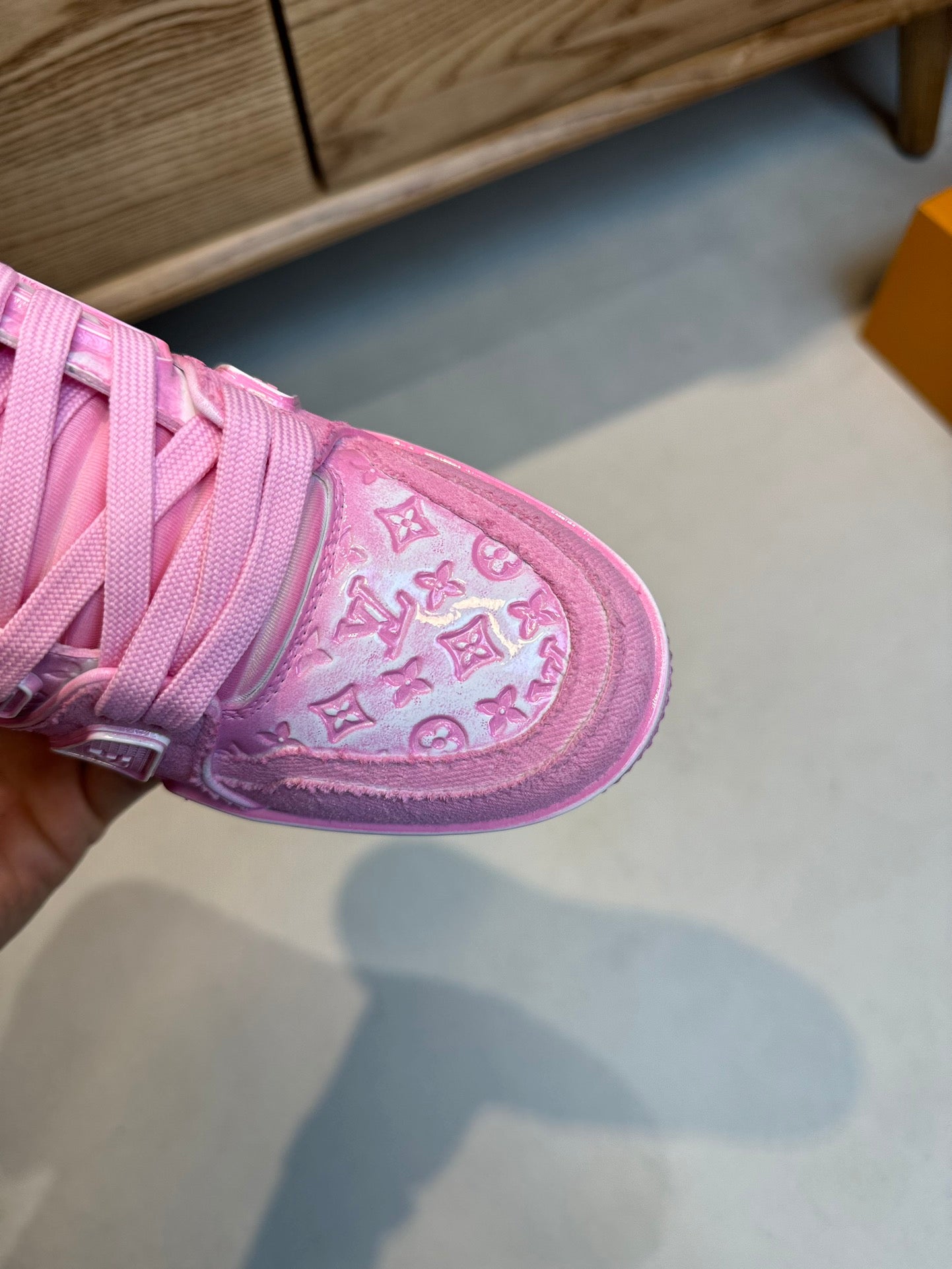 LV TRAINER MONOGRAM DENIM WHITE PINK SNEAKER