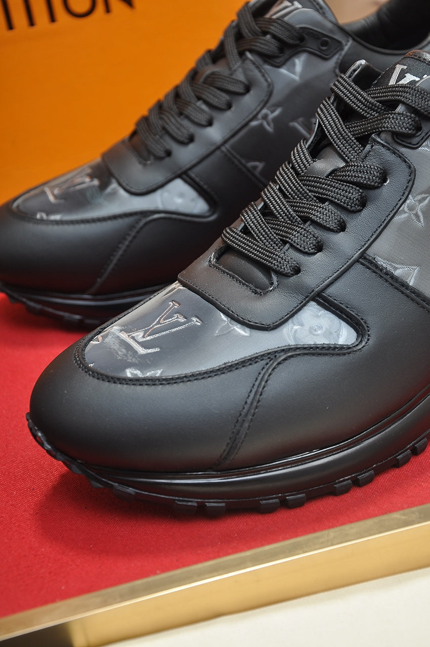 LV TRAINER SHOES IN BLACK MIX GREY EMBOSSED LAMBSKIN