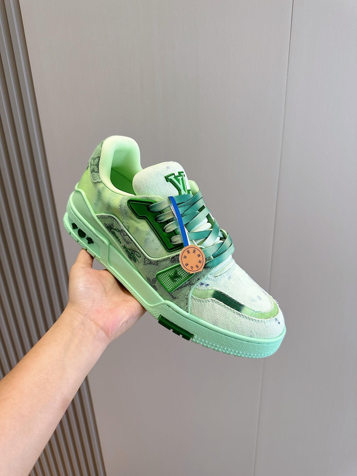 LV TRAINER SNEAKER LIGHT GREEN MONOGRAM DENIM AND CALFSKIN