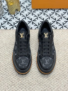 LV TRAINERS IN BLACK CALFSKIN AND JACQUARD