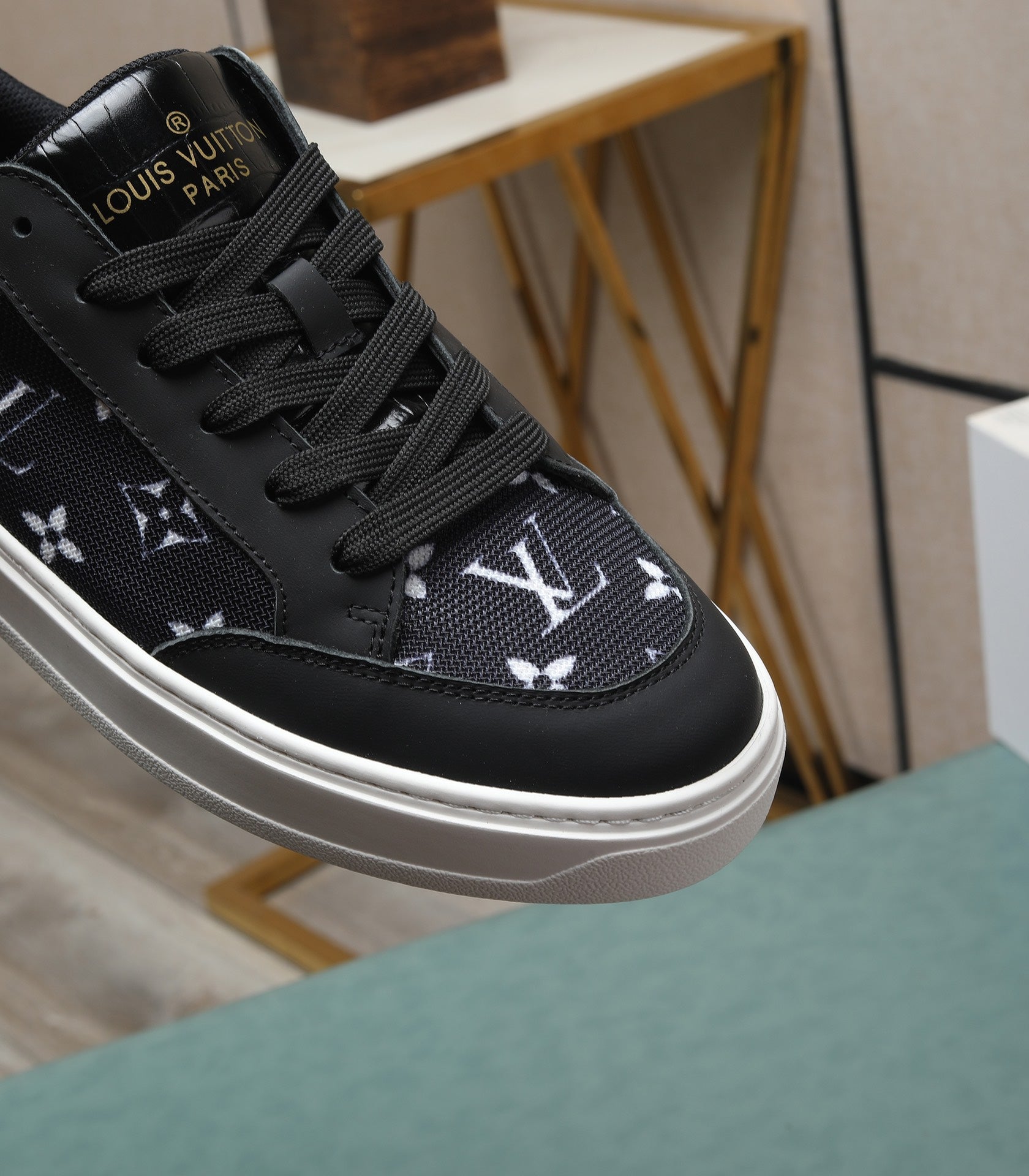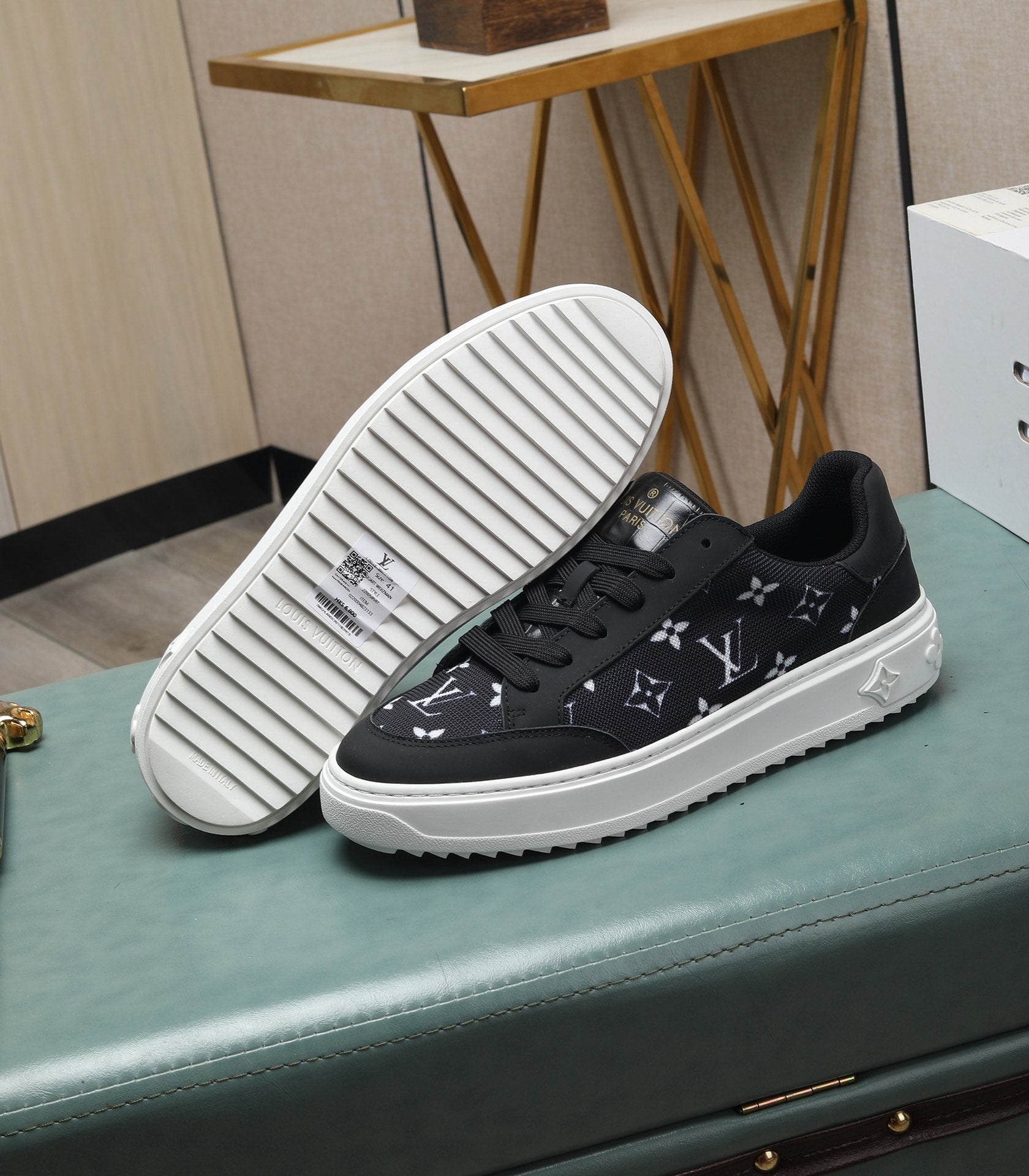 LV TRAINERS IN BLACK CALFSKIN AND MONOGRAM CANVAS