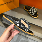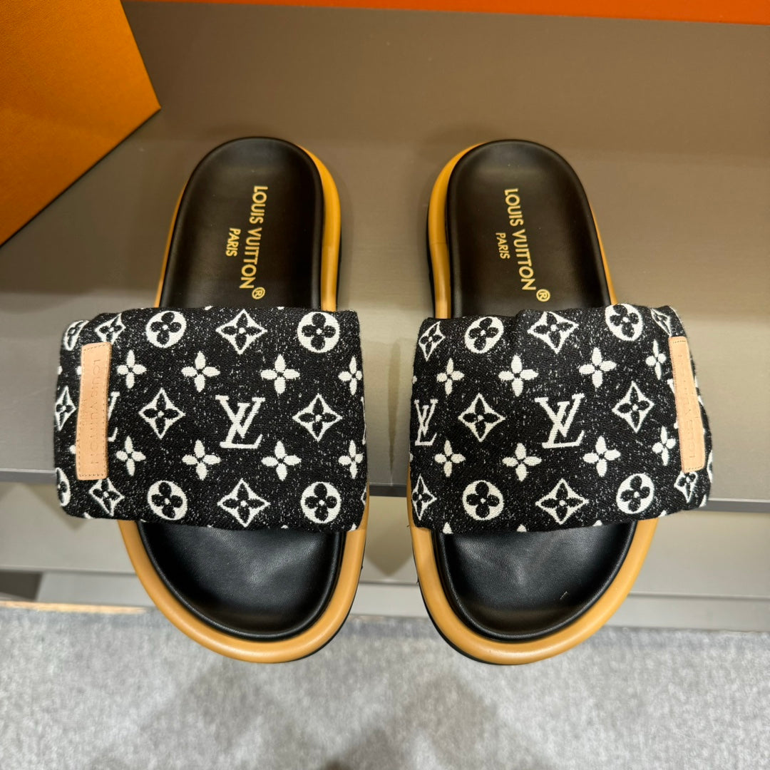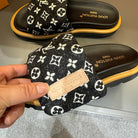 LV VELCRO SLIPPERS IN BLACK MIX WHITE MONOGRAM JACQUARD
