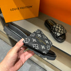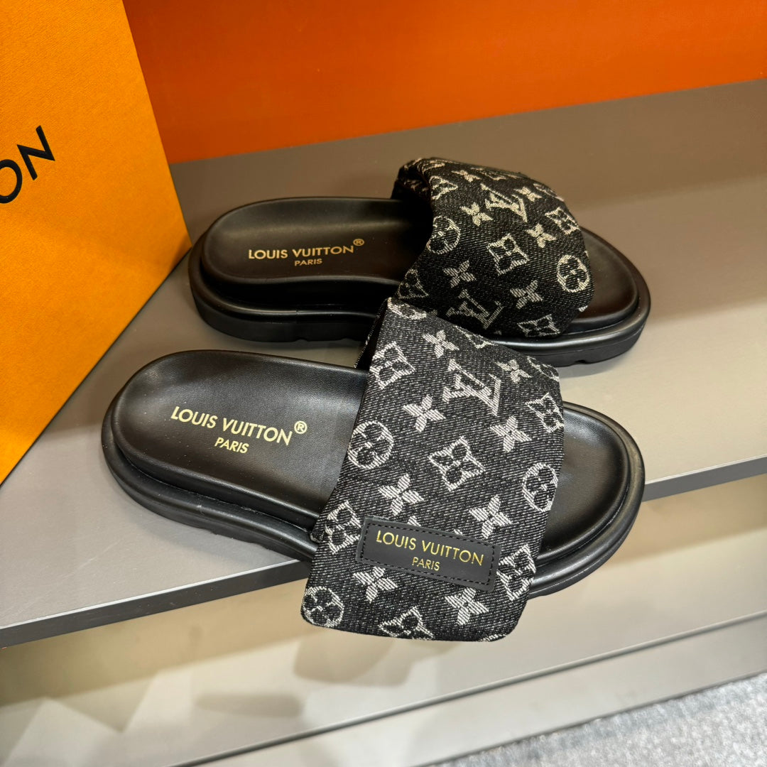 LV VELCRO SLIPPERS IN BLACK MONOGRAM JACQUARD