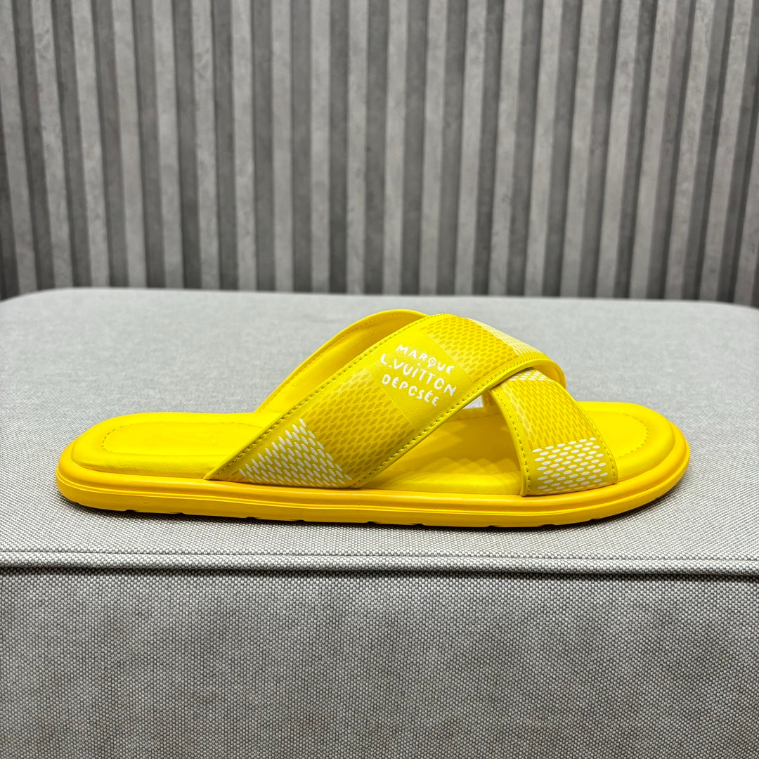 • Premium LV men's slippers, synchronizing with the 2024 early autumn runway collection. The slippers feature a high-quality fabric upper and an original, exclusive comfort sole, ensuring exceptional comfort. These are original factory-followed products.