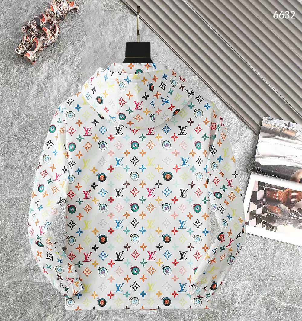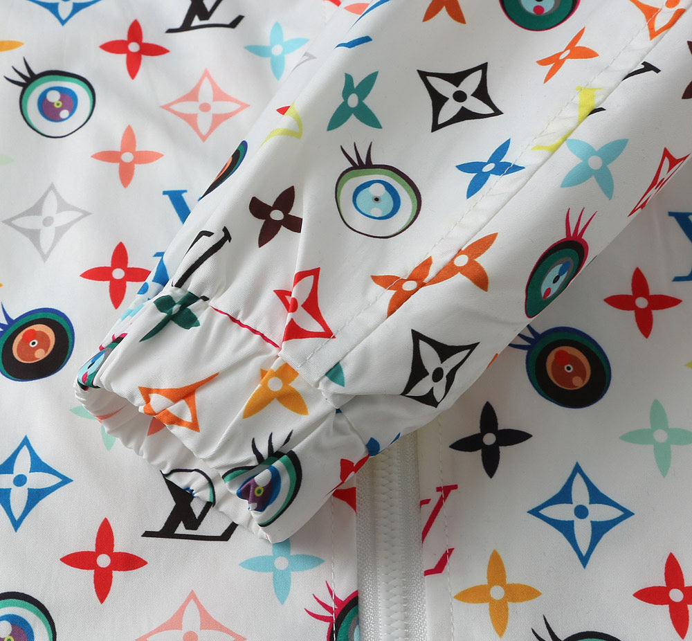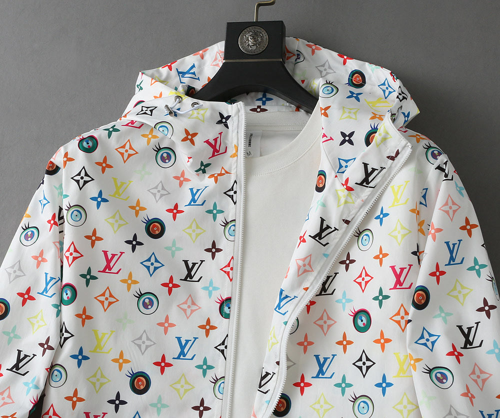 LV WHITE WINDBREAKER WITH COLORFUL MONOGRAM 238983
