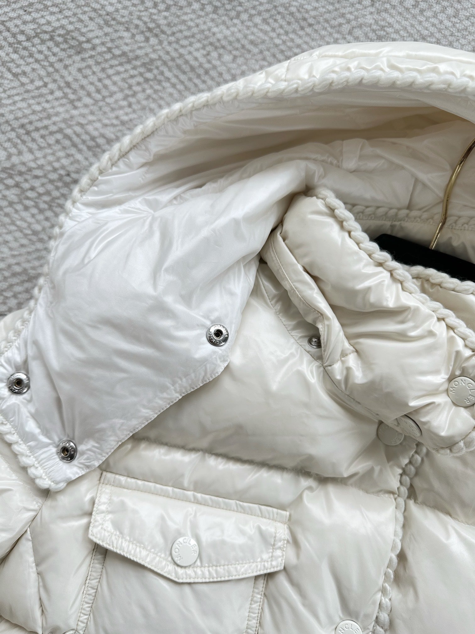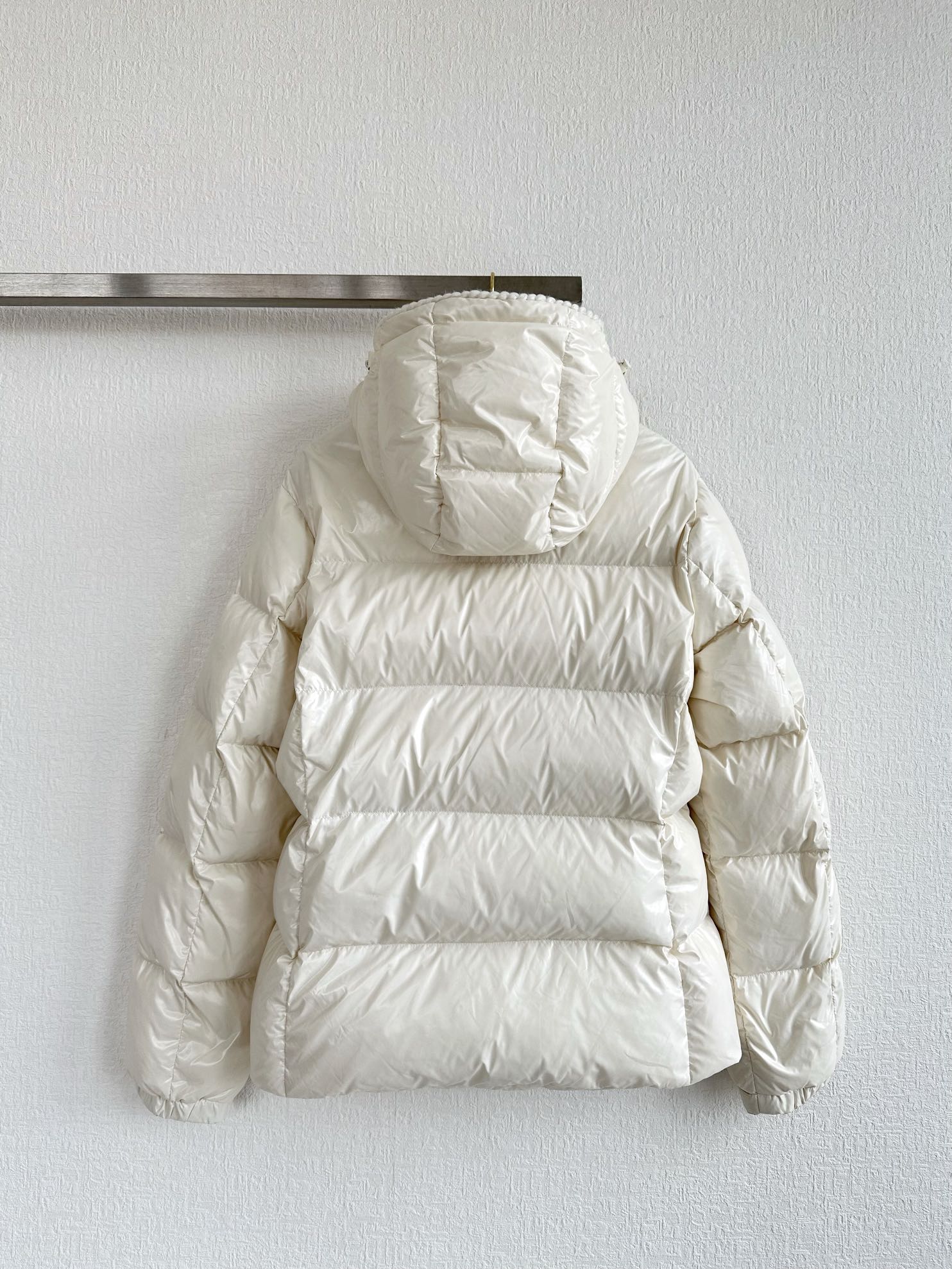 MC 2025 Hooded Down Jacket White Nylon Fabric