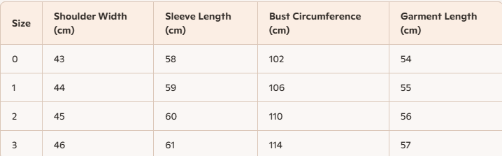 • Size : 0,1,2,3