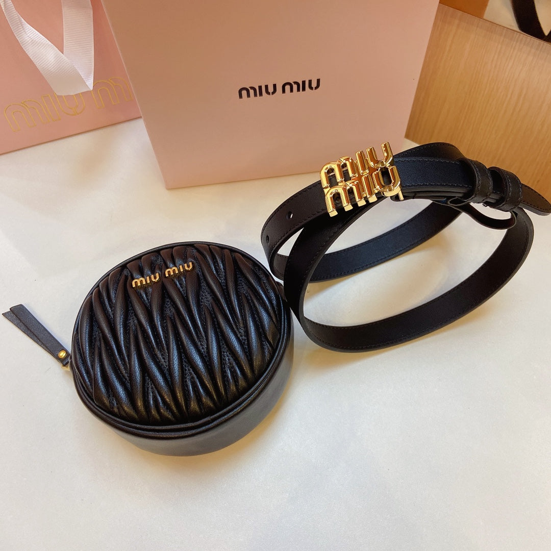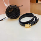 miu black belt 20mm with circle matelasse bag