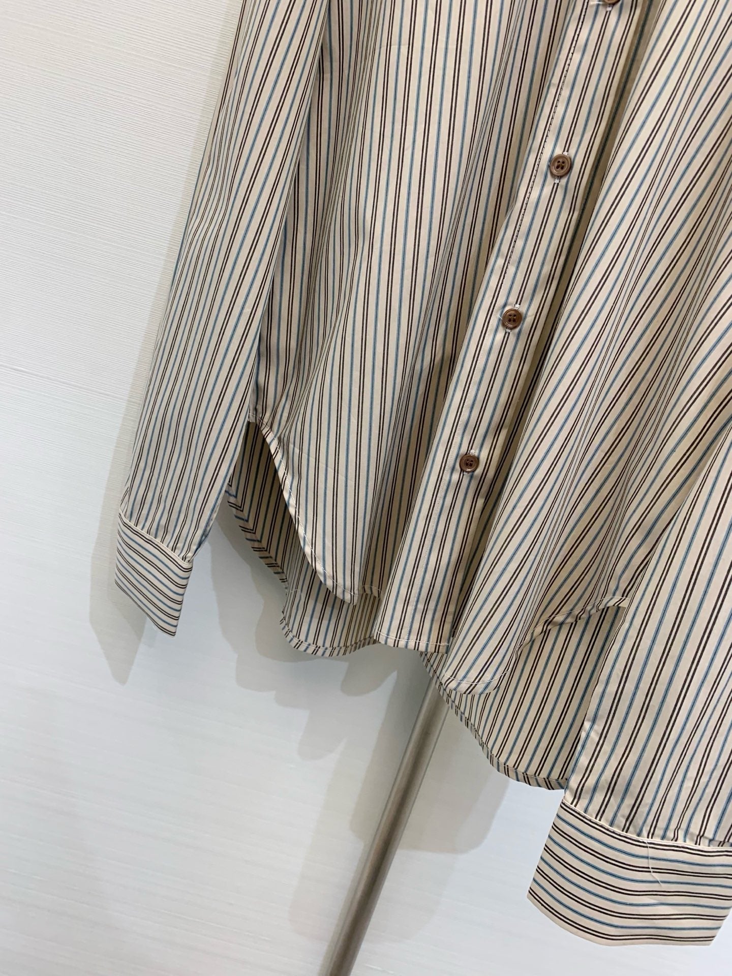 Miu Miu 25 Embroidered Striped Shirt Beige Brown Cotton