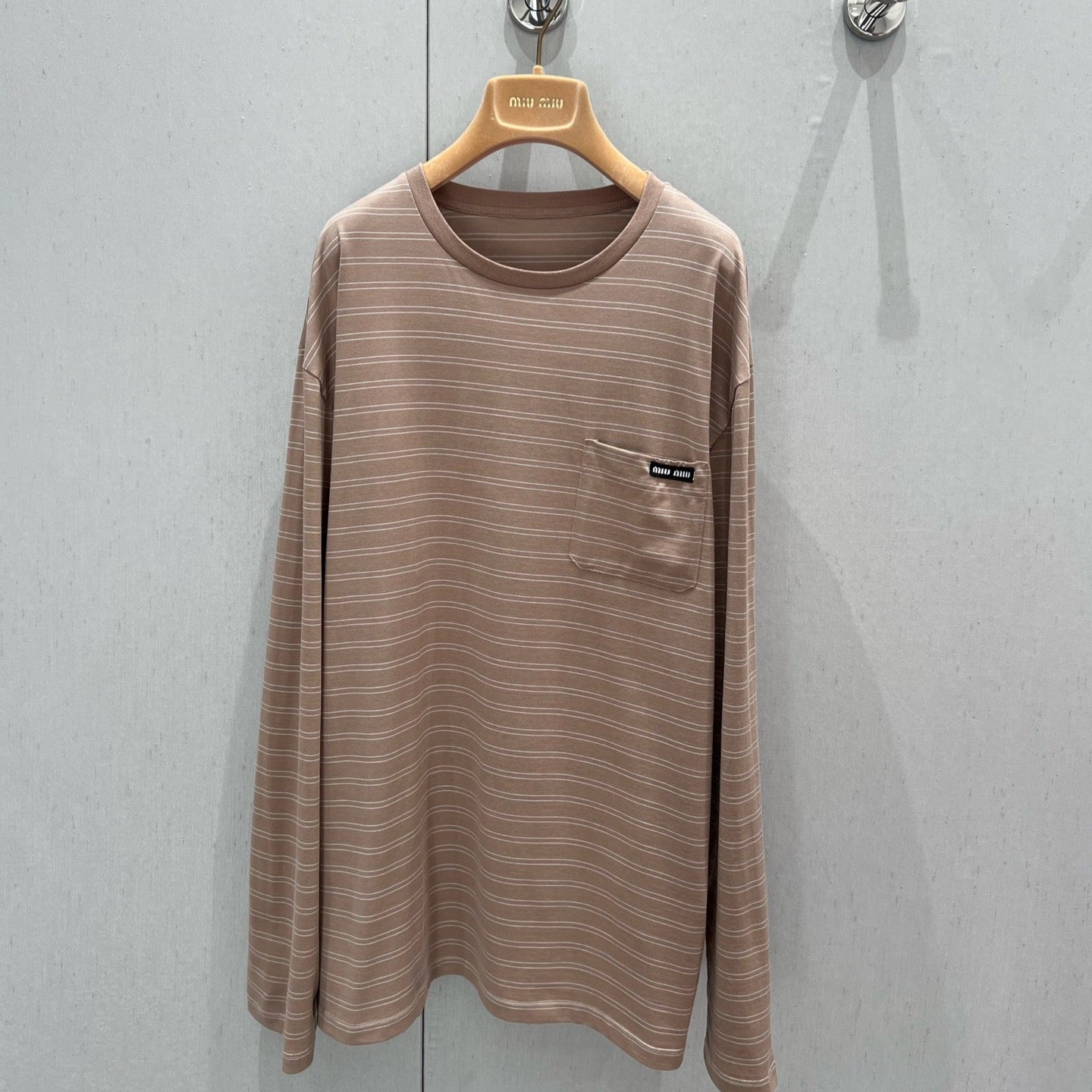 Miu Miu 25 Striped Long-sleeved T-shirt Brown Cotton 211207