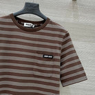 Miu Miu 25 Striped Round Neck Short-sleeved T-shirt Brown Cotton