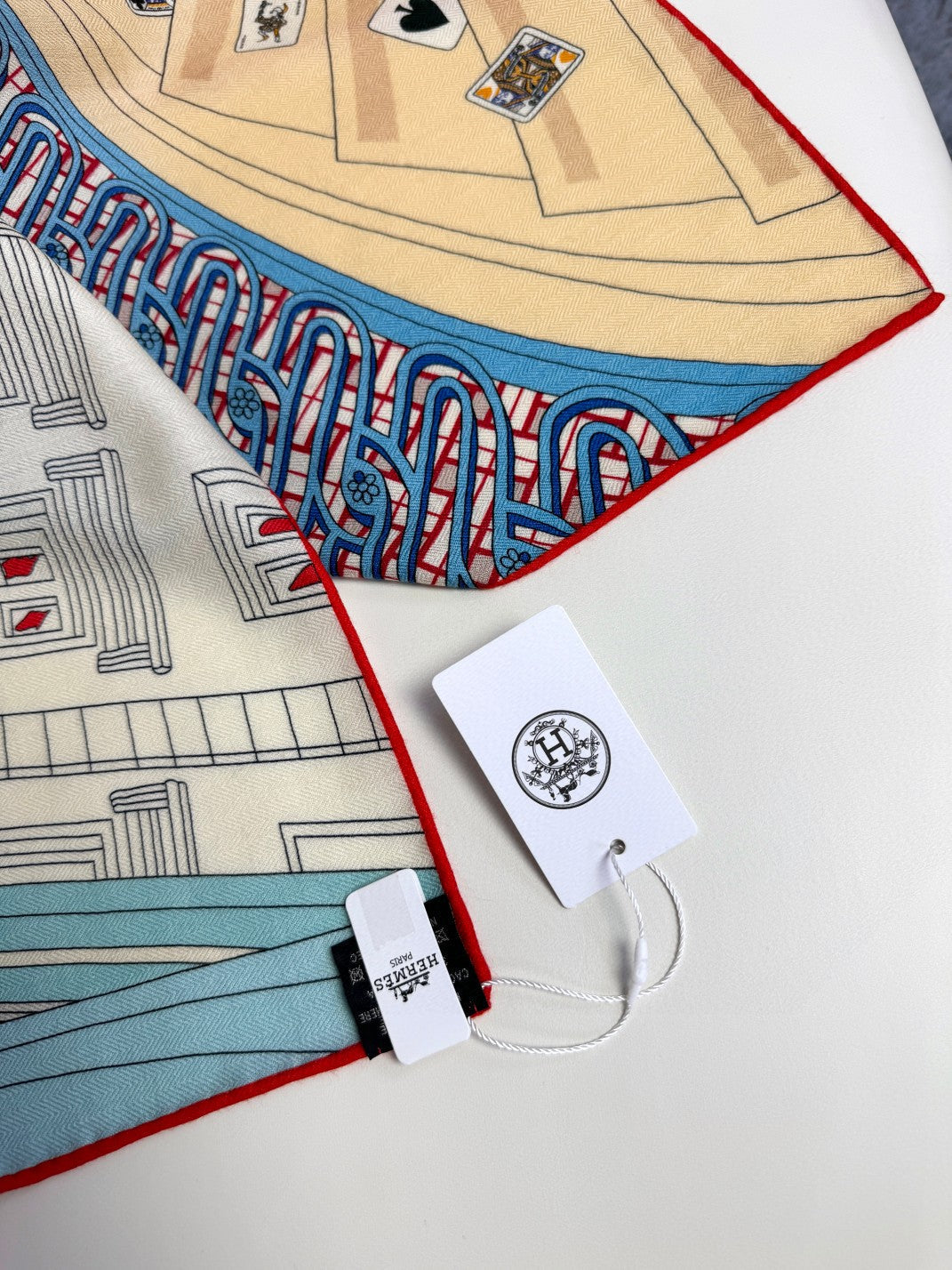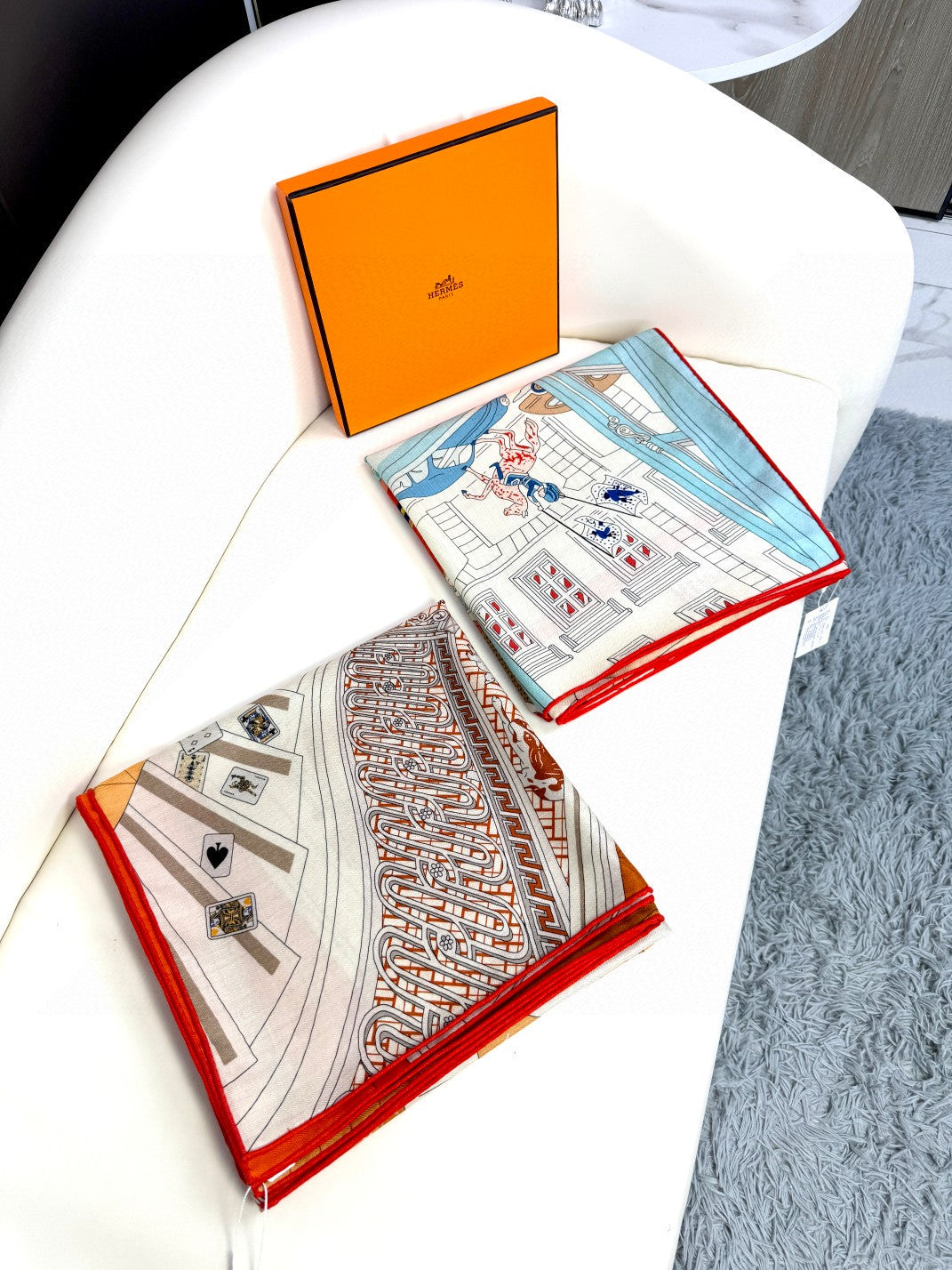 Mystere Au 24 Scarf 135 CM Light Jade Blue Colorful Cashmere And Silk