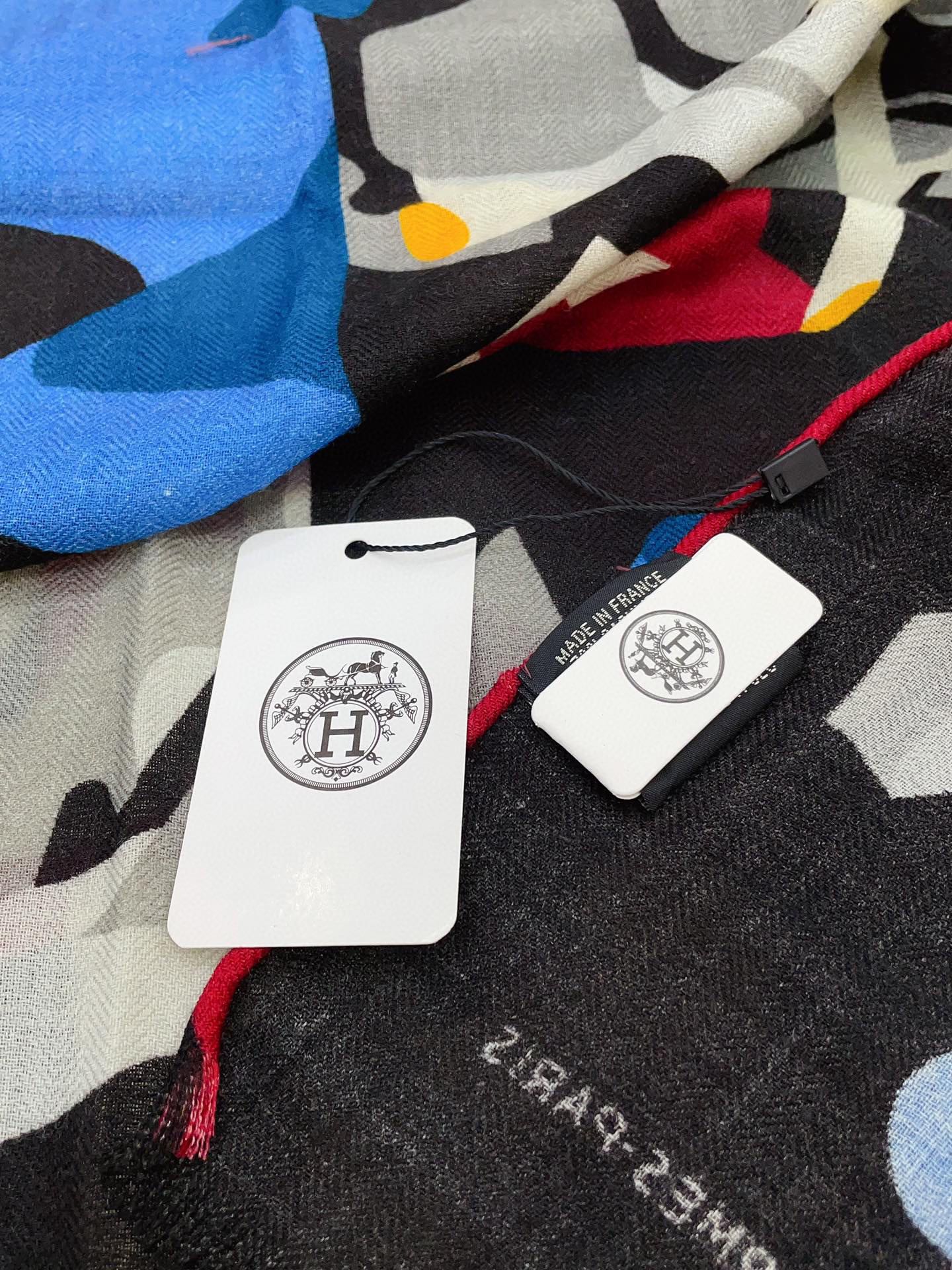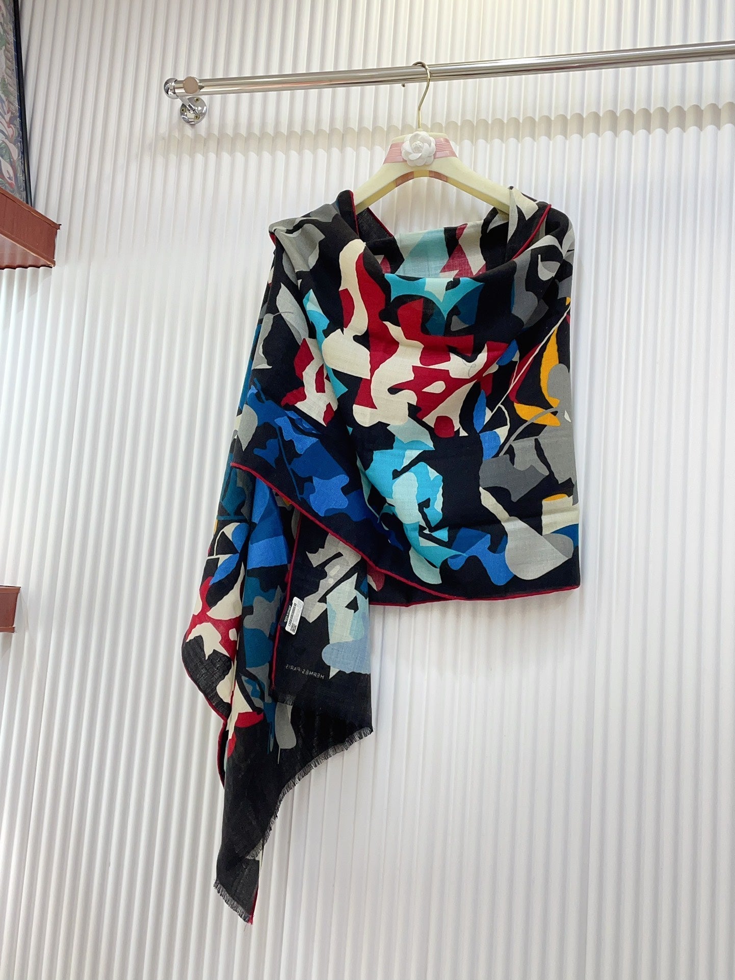 Scarf 180 CM Black Colorful Mashmere And Silk 403888