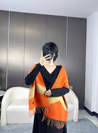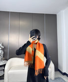 Scarf 190 CM Orange Mix Light Brown Wool Soft