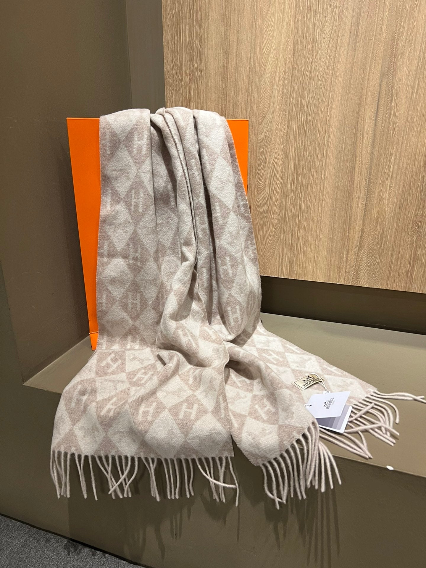 Scarf Cashmere 180 CM In Light Beige Mix Light Brown Fine Wool 290426