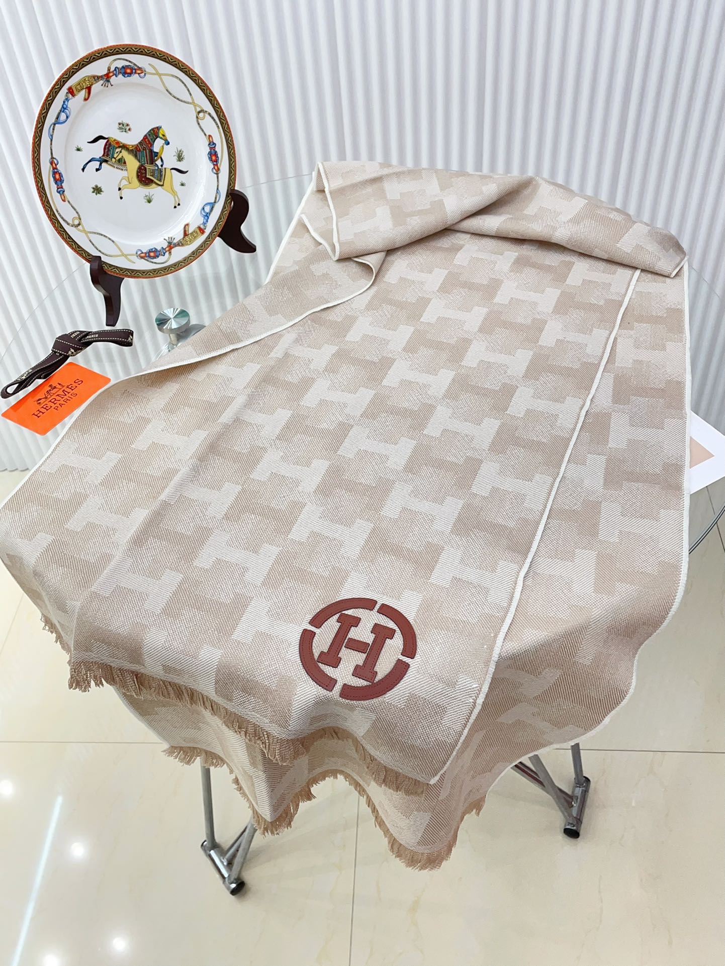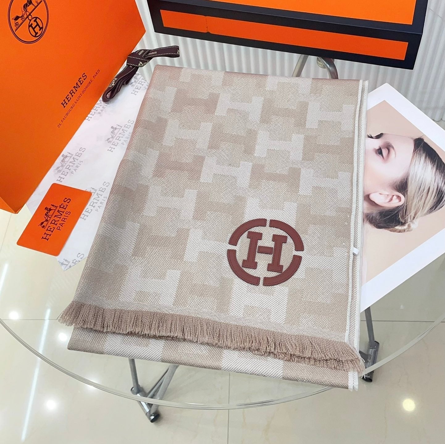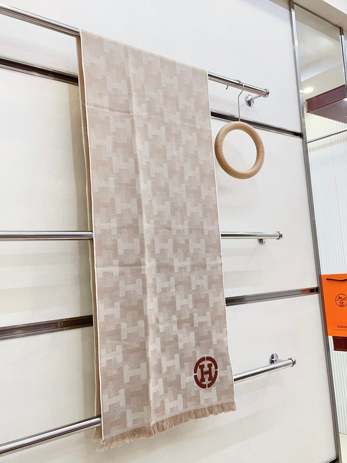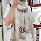 SCARF 200 CM IN TAN BROWN MONOGRAM CASHMERE